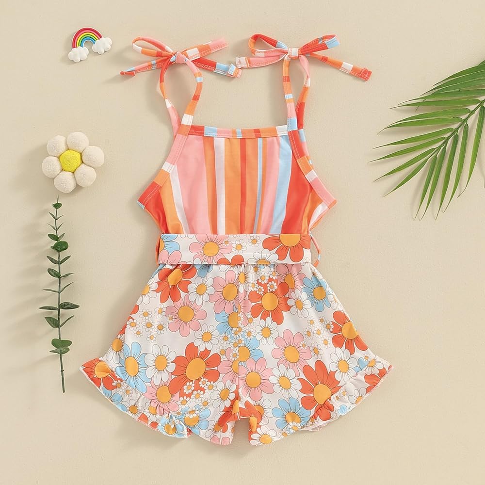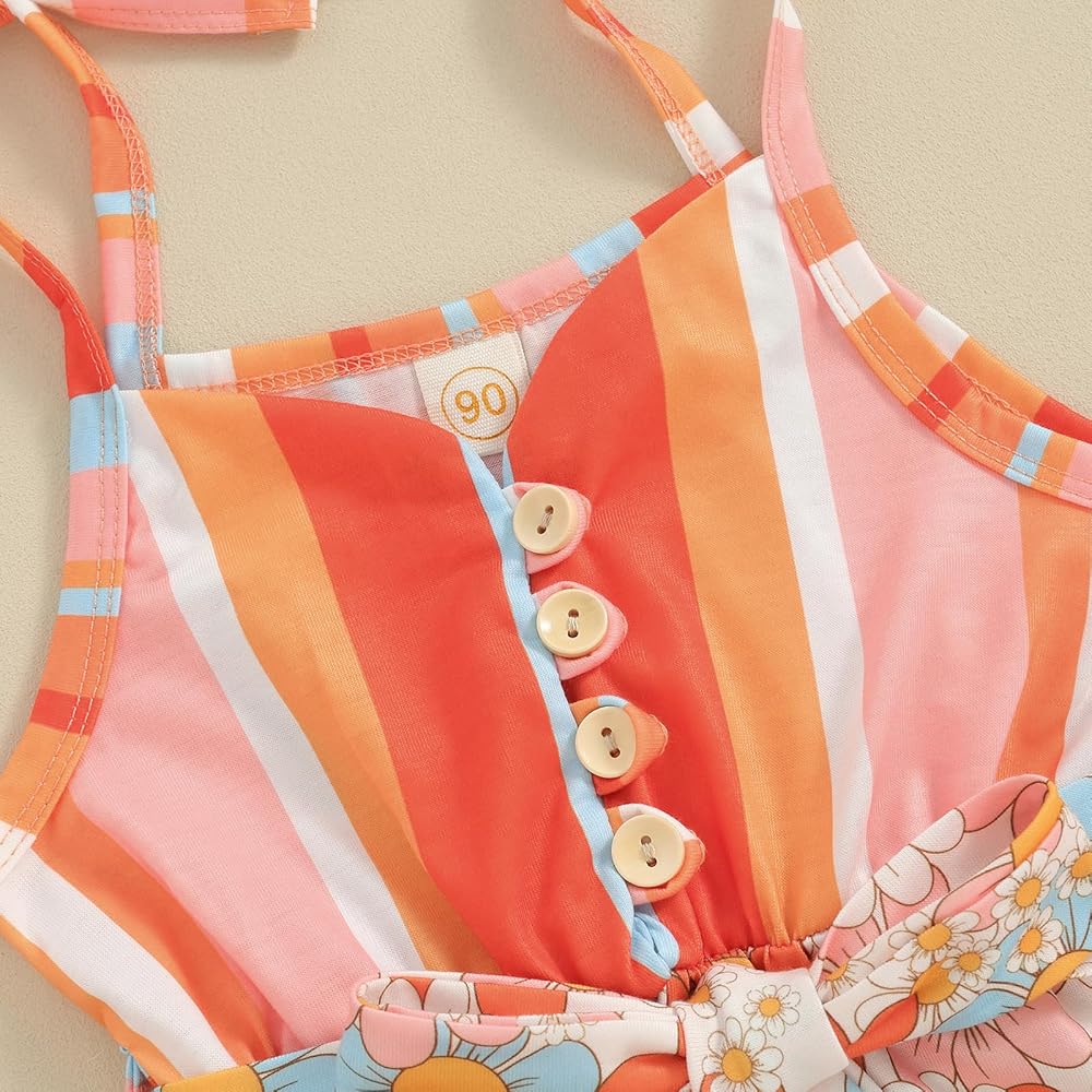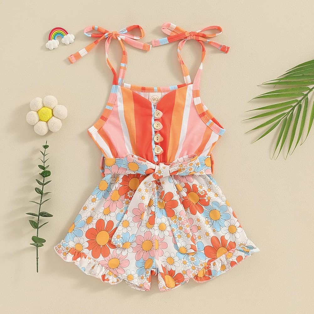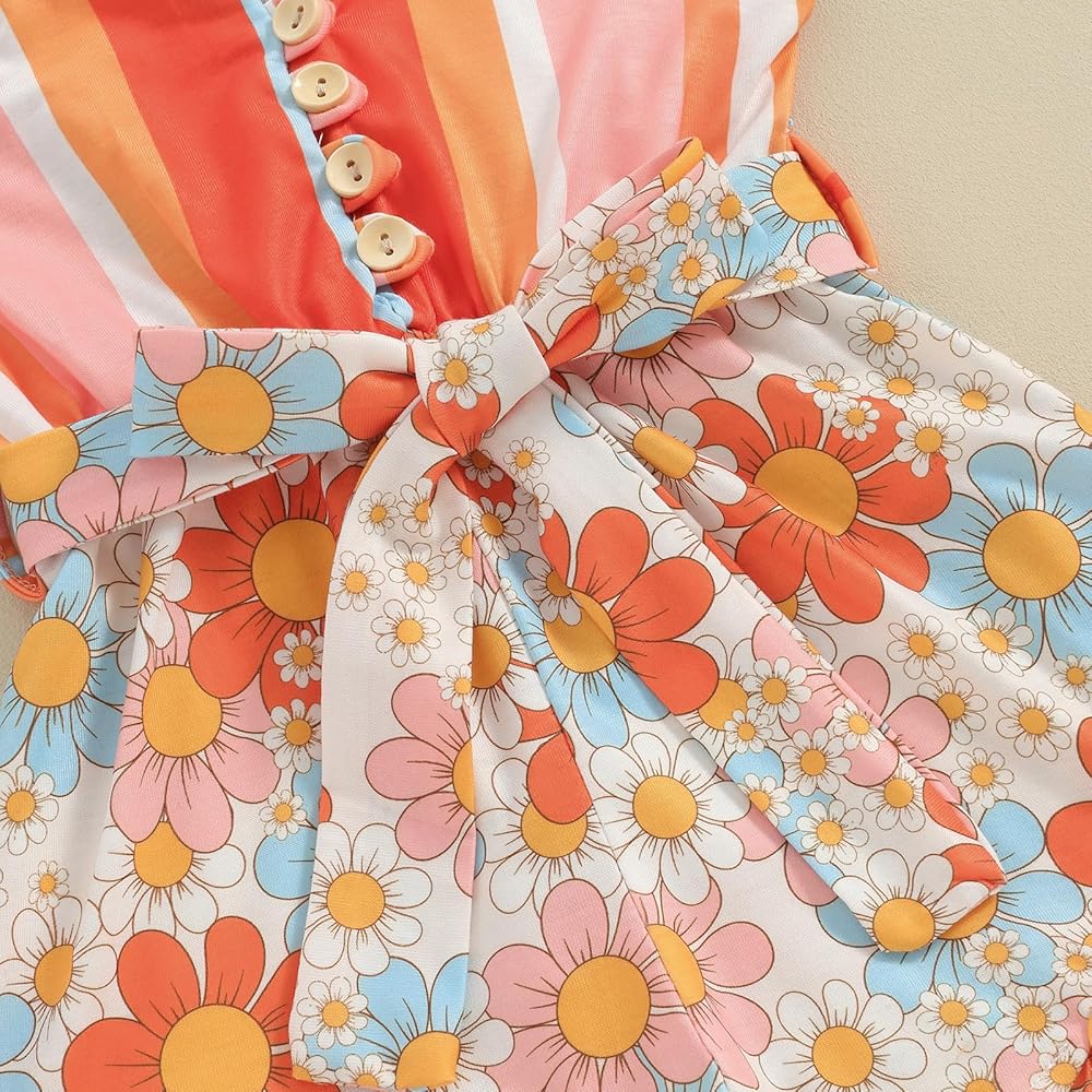 Design: Adorable toddler baby girl one piece outfit, striped and daisy print, sleeveless jumpsuit overalls with belt. Stylish toddler baby girl romper shorts, makes your little girl more cute and beautiful!