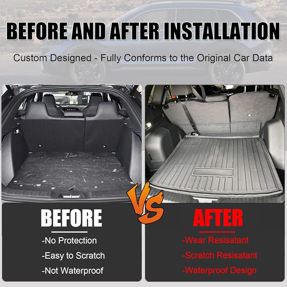 [سهلة التركيب والتنظيف] تناسب بطانة صندوق السيارة موديلات Honda CR-V 2023-2024، فقط ضع السجادة في صندوق السيارة أو قم بإزالتها بسهولة عند الحاجة. ليست هناك حاجة لأي أدوات إضافية! كل ما عليك فعله هو إزالته من صندوق السيارة وغسله بالماء أو الصابون. سطح سجادة الحمولة مقاوم للبقع وسيبدو جديدًا حتى بعد سنوات من الاستخدام!