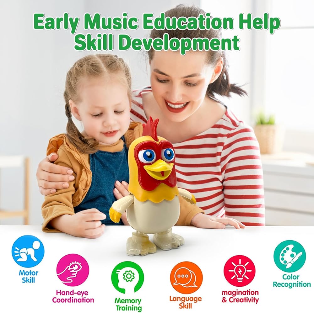 • 🐣[ألعاب موسيقية للأطفال مع أصوات] من السهل دائمًا جذب انتباه الطفل على شكل دجاجة بارتوليتو اللطيفة والألوان الزاهية. عند التشغيل، ستتحرك الألعاب الموسيقية للدجاج الراقص، وتتأرجح الأذرع مع تشغيل الموسيقى المضحكة، وسوف تجذب طفلك لمطاردته. ألعاب أطفال موسيقية مثالية للأطفال من سن 1 2 3 4 سنوات من البنات والأولاد الصغار لتطوير مهاراتهم الحركية الإجمالية وعضلات الفخذ وتوازن الجسم.