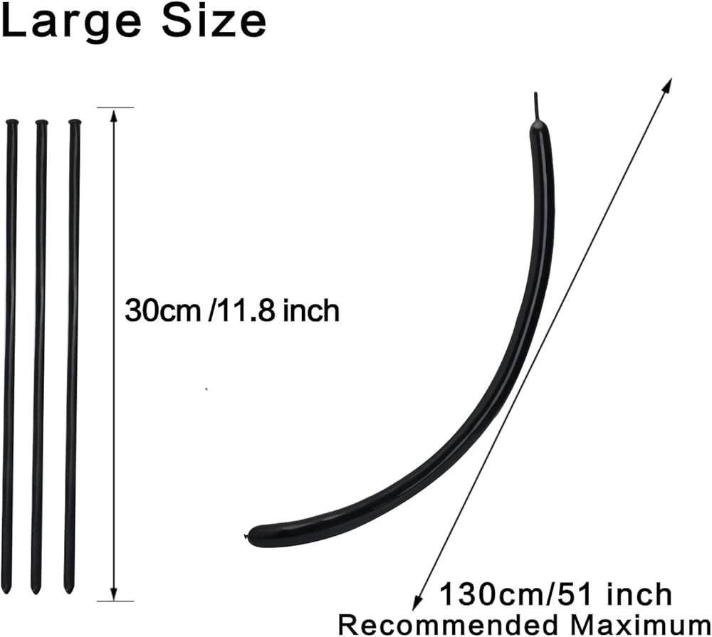 كيفية الاستخدام: يبلغ طول كل بالون طويل نحيف غير منفوخ 11.8 بوصة، ويمكن أن يصل إلى 51 بوصة بعد النفخ. تعتبر البالونات السوداء الملتوية مثالية لصنع جميع أنواع الأشكال مثل الزهور والأشكال والنباتات والفراشات والقبعة والديناصورات والطيور والكلاب والجراء وما إلى ذلك. رواية وساحرة وسهلة التشغيل، مما يسمح لك بتجربة لا يمكن استبدالها. متعة الفن الحيواني الذي تصنعه بنفسك! تحفيز الإبداع والخيال لدى الأطفال ويمكنه أيضًا تعزيز العلاقة بين الوالدين والطفل.