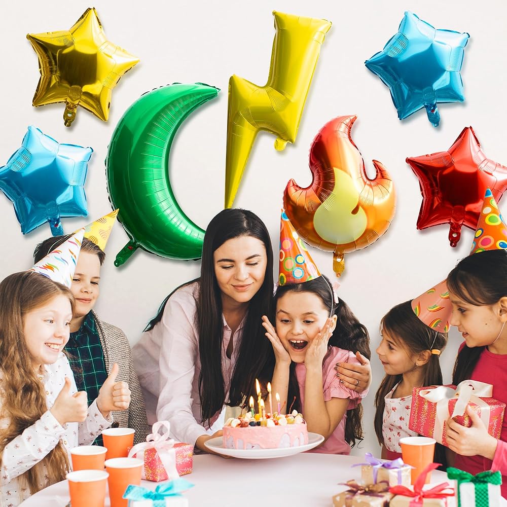 موضوع Lightning Bolts: تم تصميم بالوناتنا بموضوع Lightning Bolts، حيث توجد أشكال مختلفة من البالونات، مثل البرق والنجمة والنار والأوراق الخضراء والدائرية وما إلى ذلك.