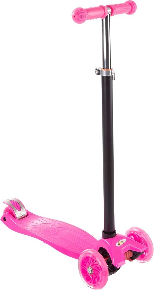 Your little boy or girl is sure to enjoy hours of fun zooming around on the Kick Scooter by Lil' Rider! This fun kick scooter features 3 LED light up wheels for added stability and a handlebar that is adjustable in height, so the scooter can grow with your child. Steering is done by pushing the handlebar in the direction your child wants to go, while the one-foot braking system on the back end of the scooter makes it easy for children to stop quickly. It's a fantastic beginner push scooter that can help your child develop their sense of balance and coordination!