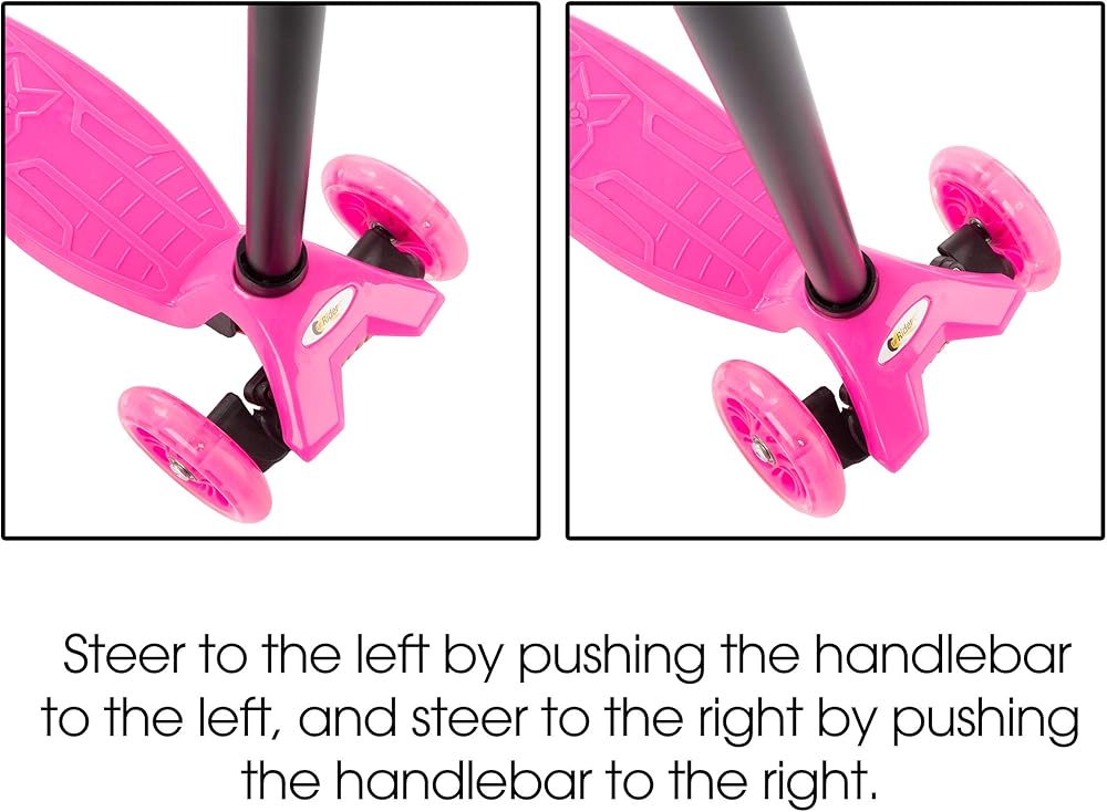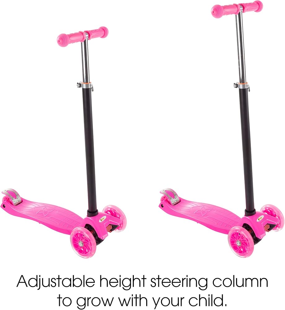 LED LIGHT UP WHEELS - The three wheels on the scooter provide added stability and also have LEDs in them that light up when the scooter is moving for a fun touch that your child is sure to love!