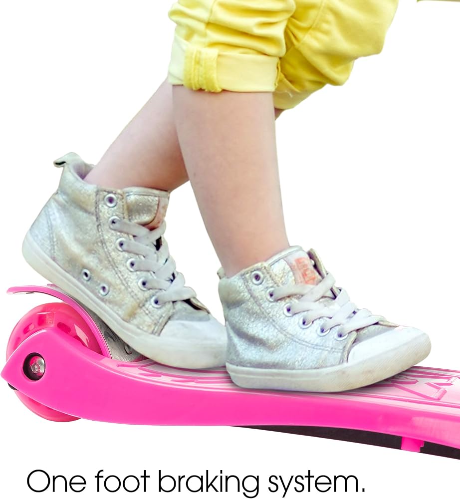 EASY STEERING AND BRAKING - Steering is done by pushing the handlebar in the direction your child wants to go, while the one-foot braking system on the back end of the scooter makes it easy for children to stop quickly.