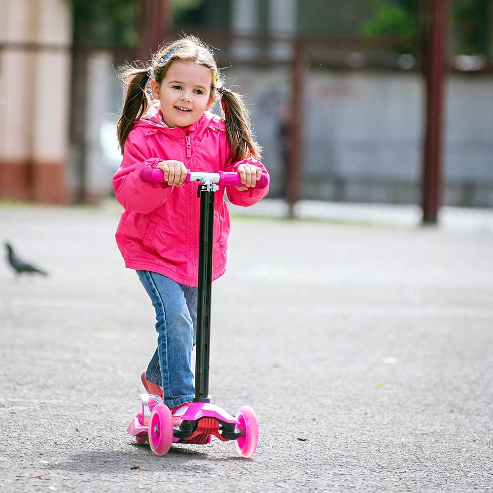 ADJUSTABLE HEIGHT - The push scooter is conveniently equipped with an adjustable height handlebar that can be moved to 3 different heights so that the scooter can grow with your child. This fun beginner scooter is suitable for children up to 100lbs.
