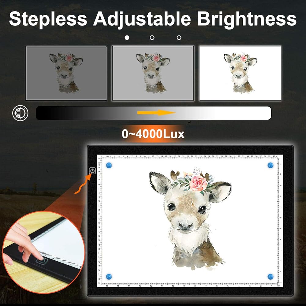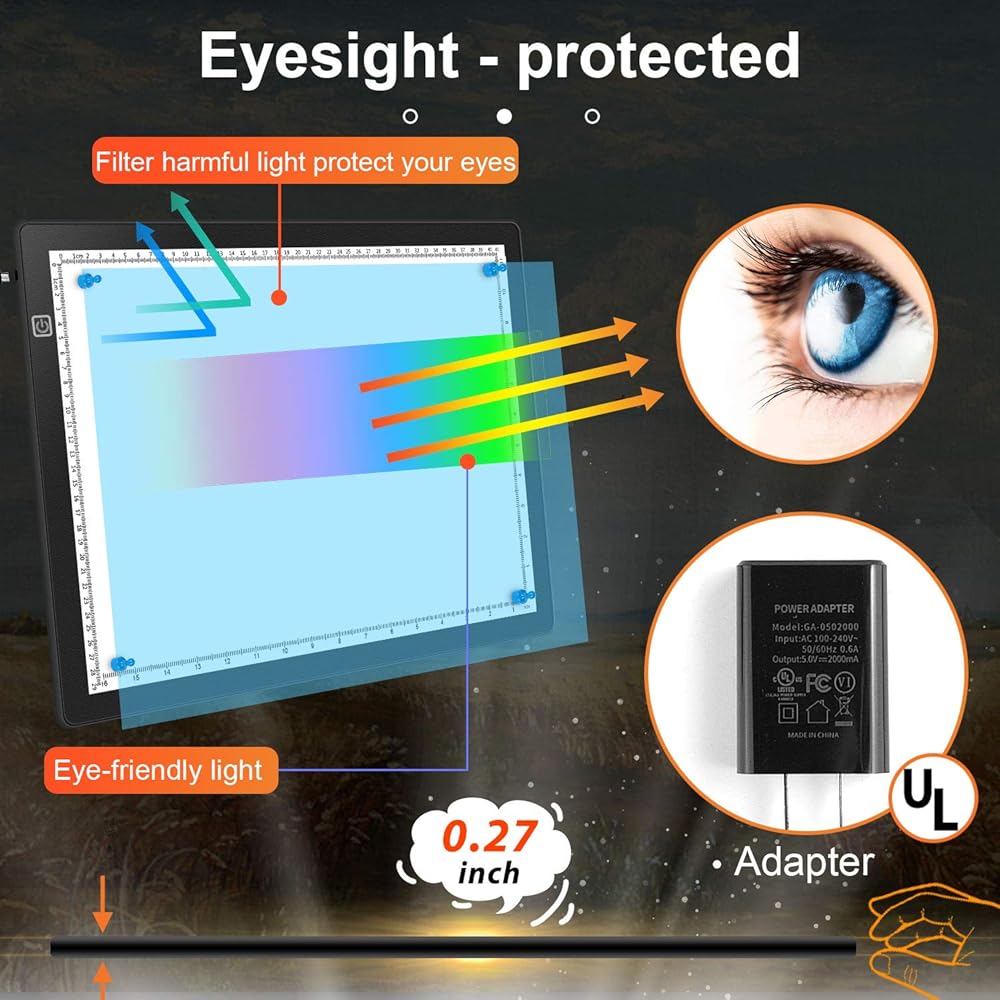 • 【Guarding structure & Scale design】 Because the lightbox is a high-quality panel, a protective film and LED light, and a quadruple structure of constant current and constant voltage, it is uniformly brightly illuminated by beautiful diffused light. The trace base uses energy-saving LED lights that are gentle on the eyes, and the light is soft and not dazzling. You can reduce eyestrain and discomfort even when working for a long time.