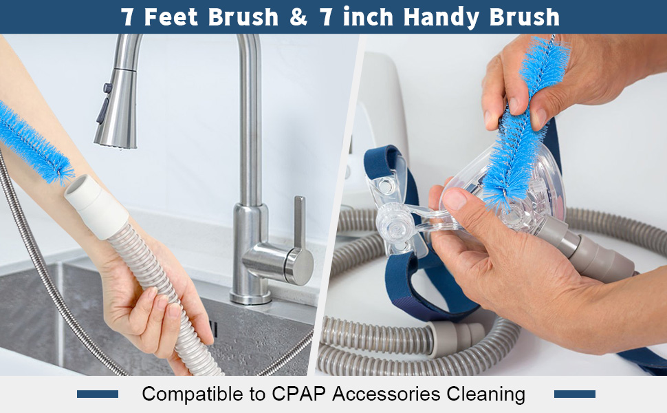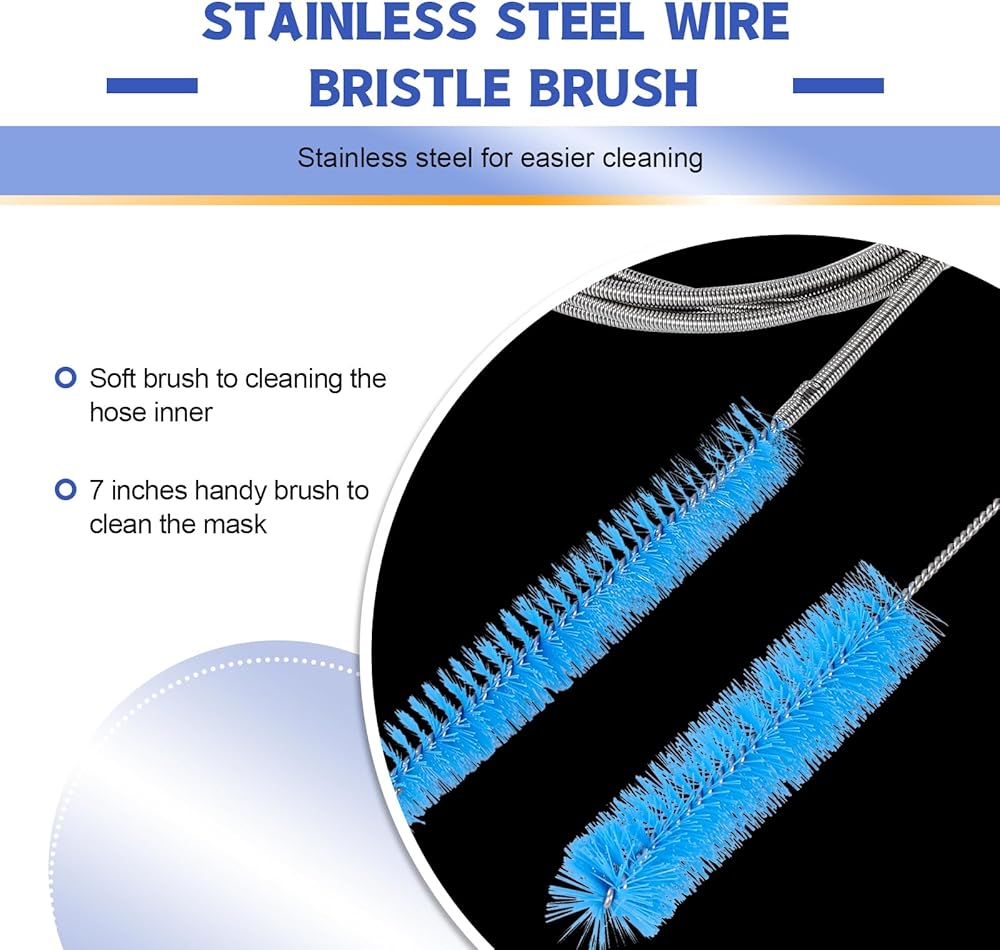 فرشاة تنظيف مرنة: فرشاة تنظيف ناعمة مقاومة للصدأ تقوم بالمهمة بشكل جيد. يمكنك بسهولة تنظيف طول أنبوب CPAP بالكامل باستخدام فرشاة أنبوبية بطول 7 بوصات. فرشاة مرنة مريحة للتنظيف.