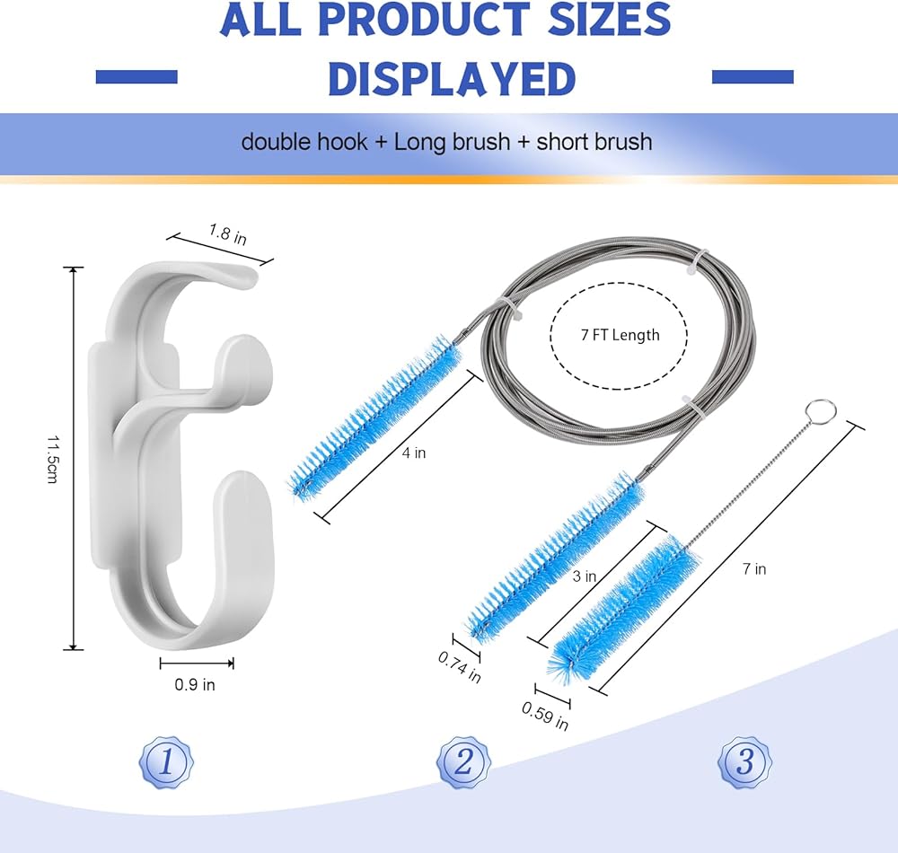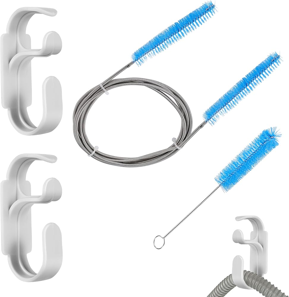 تشتمل العبوة على 4 قطع من الملحقات: 2 حزمة خرطوم شماعات + 7 أقدام مرنة + 7 بوصات فرشاة سلك فولاذية يدوية. متوافقة مع معظم أحجام أنابيب CPAP، وتستوعب ما يصل إلى 3 خراطيم في وقت واحد، بما في ذلك الخراطيم الطويلة جدًا.
