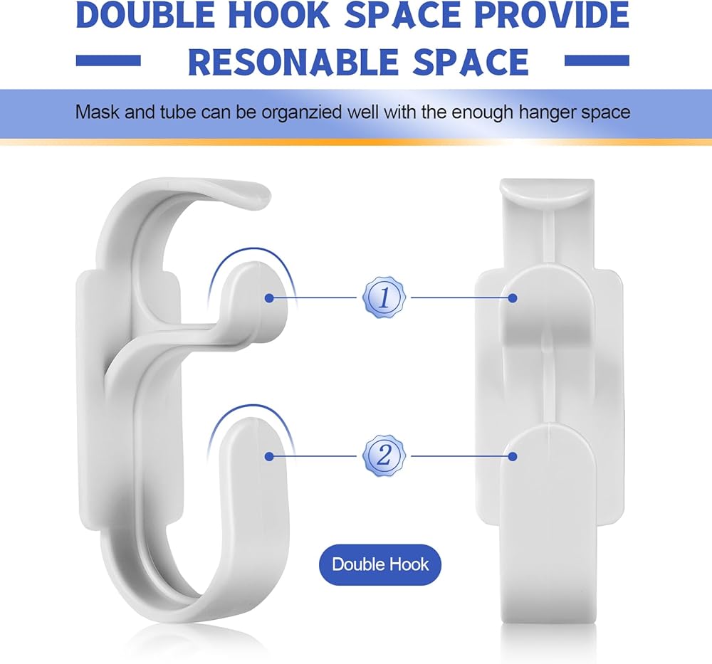 خطاف الخرطوم متوافق مع جميع أحجام أنابيب CPAP، وله سعة كبيرة لتعليق 3 خراطيم في نفس الوقت، ويتعامل مع الخراطيم الطويلة جدًا بشكل جيد للغاية، وله تصميم مضاد للفصل دون القلق بشأن السقوط عند الانقلاب. التصميم الاحترافي يجعل مستخدم CPAP مريحًا.