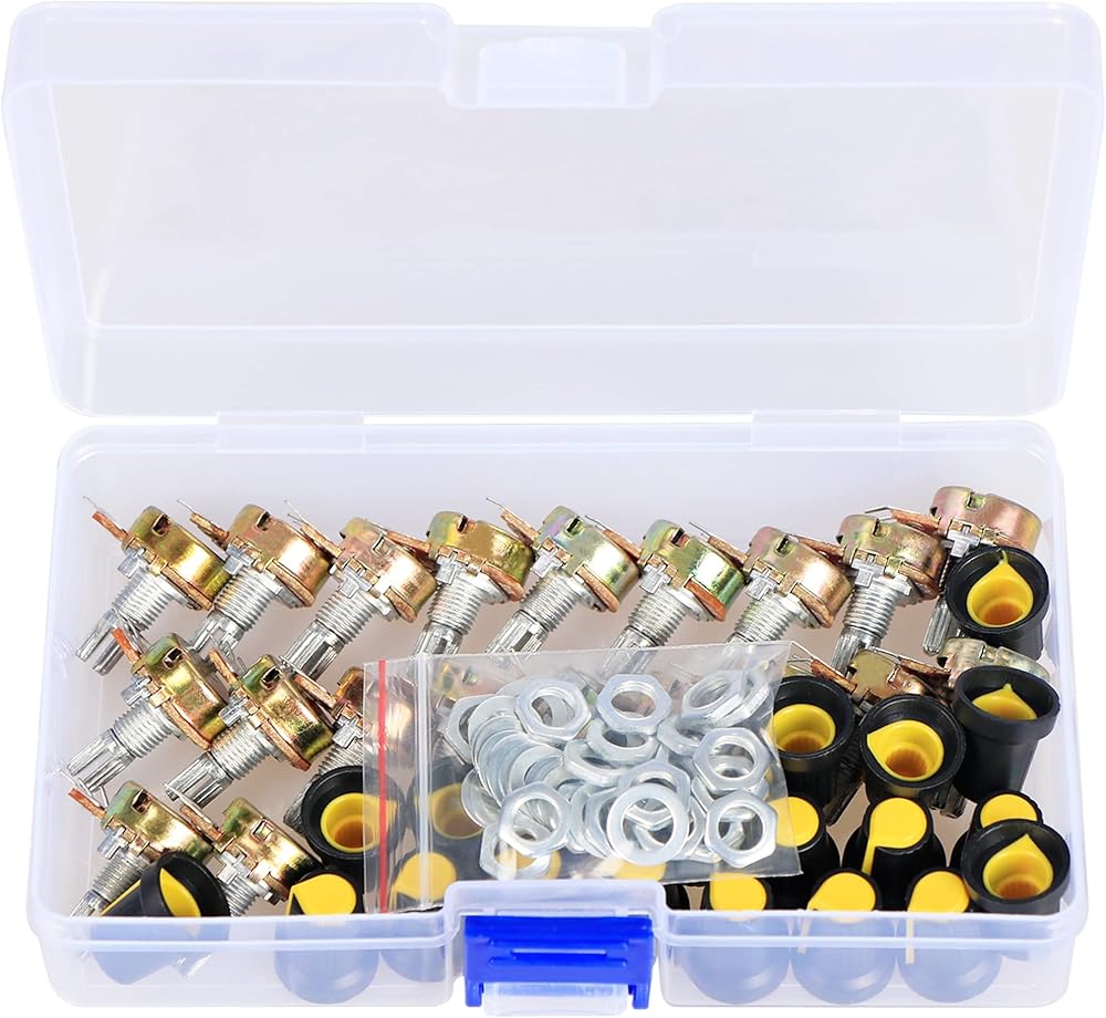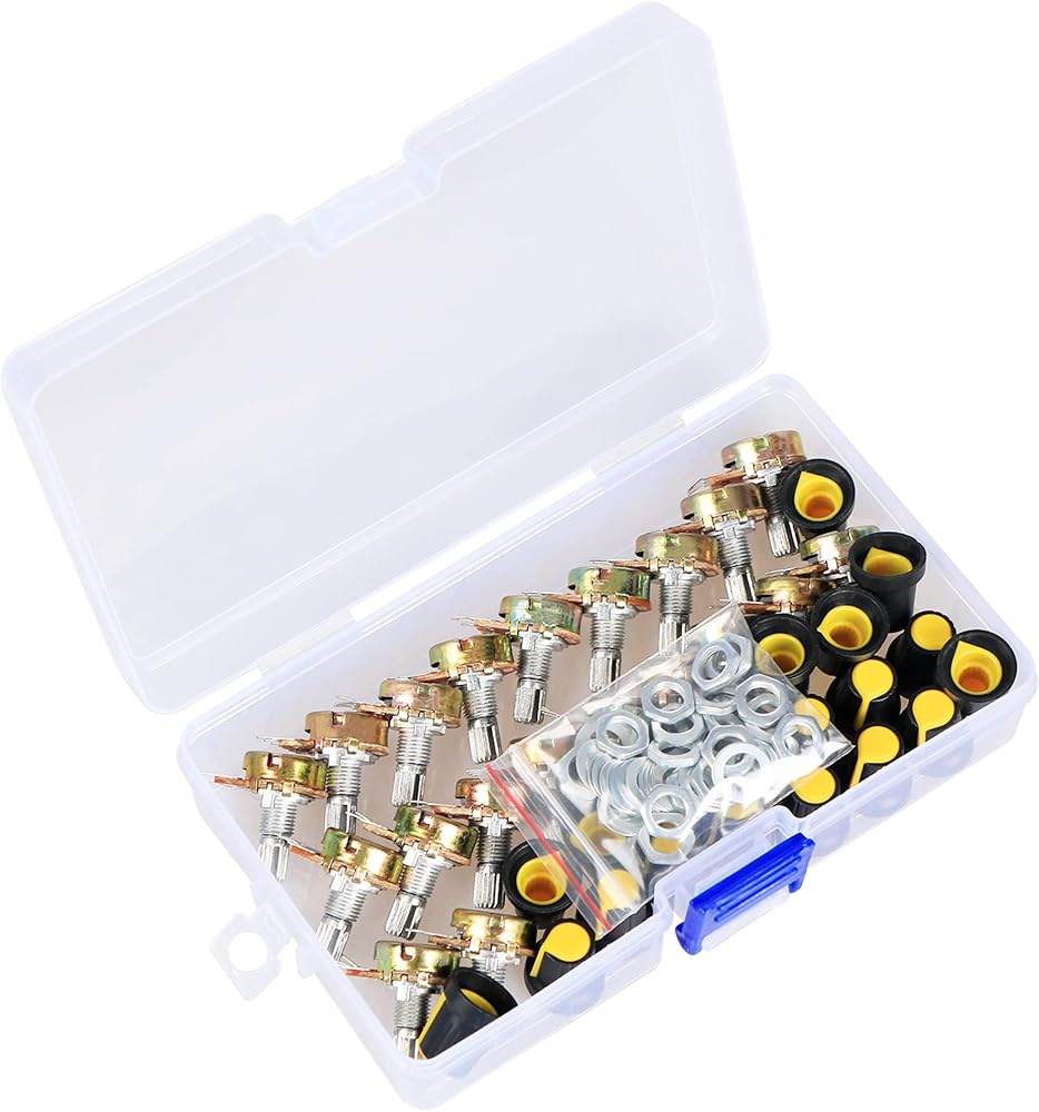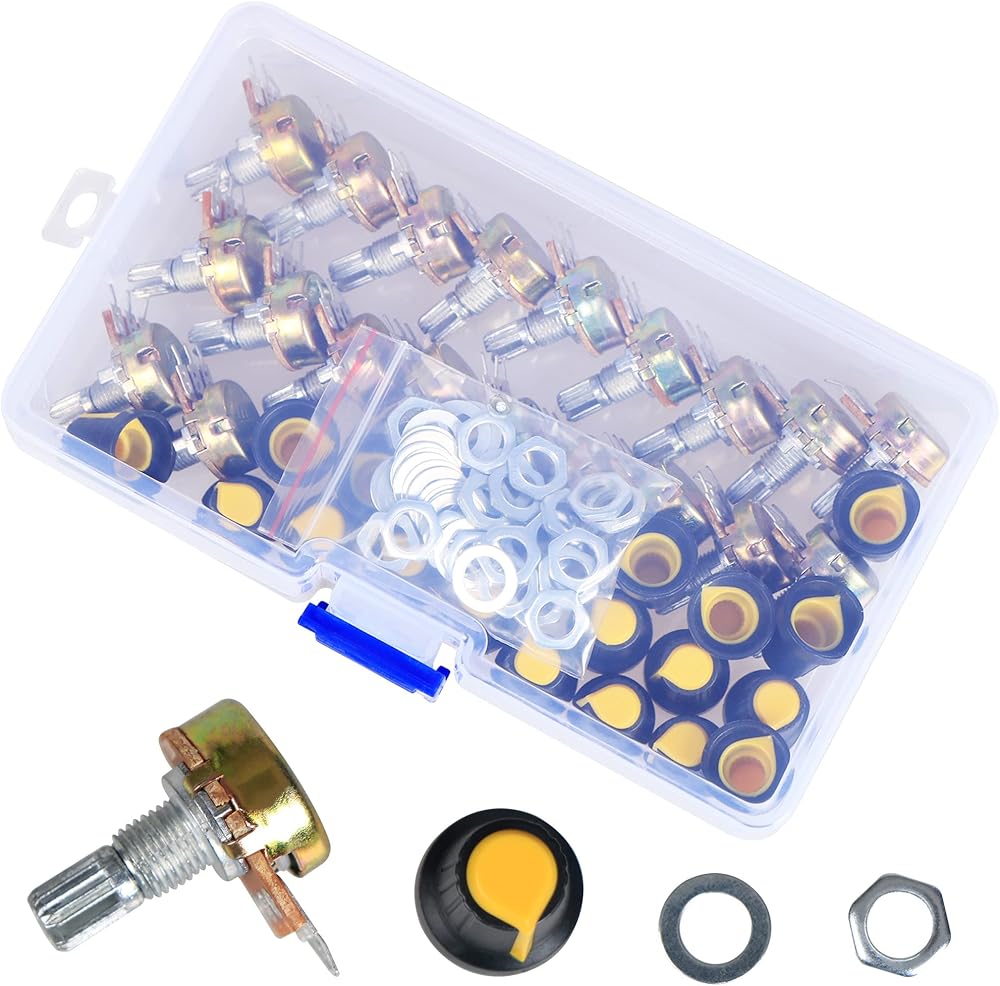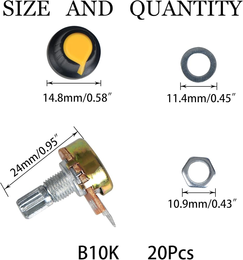 【 Package Quantity】: 20 Sets Potentiometer, these potentiometer kit with potentiometer knob, nuts and washer, each 20 Pcs