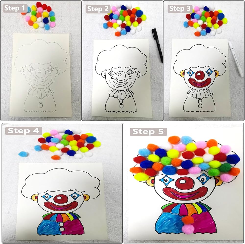 Pom poms set is perfect for DIY craft projects,we can used them to make necklaces,flowers,animals and halloween or Christmas decorations. It is suitable for schools, homes, handicraft workshops,and other places.