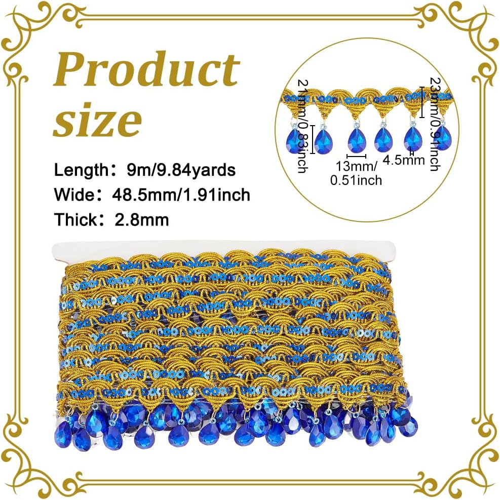 Package & Size:You will receive a really pretty fringe lace which is 9.84 yards (9m) long, 1.9 inch (48.5mm) wide, and 2.8mm thick. This will be enough for you to use in daily life decorating your home and your clothes.