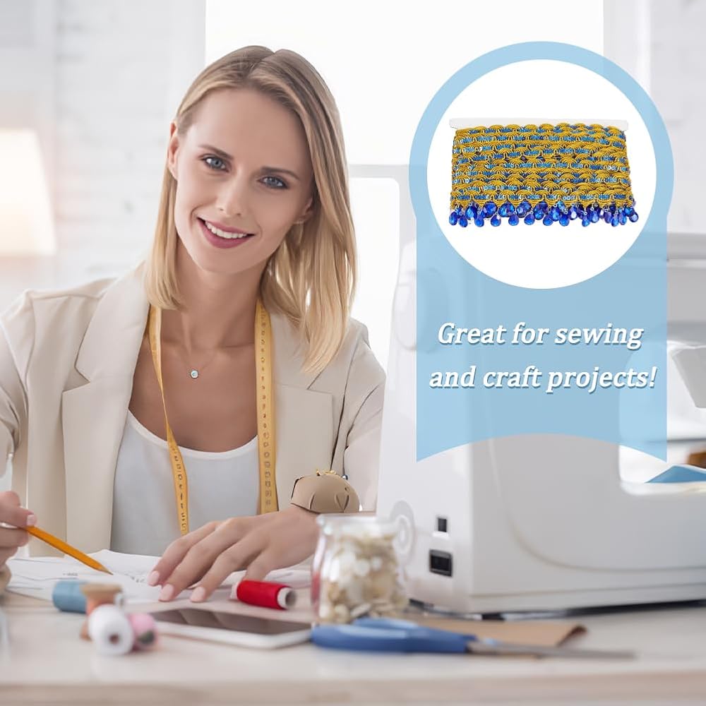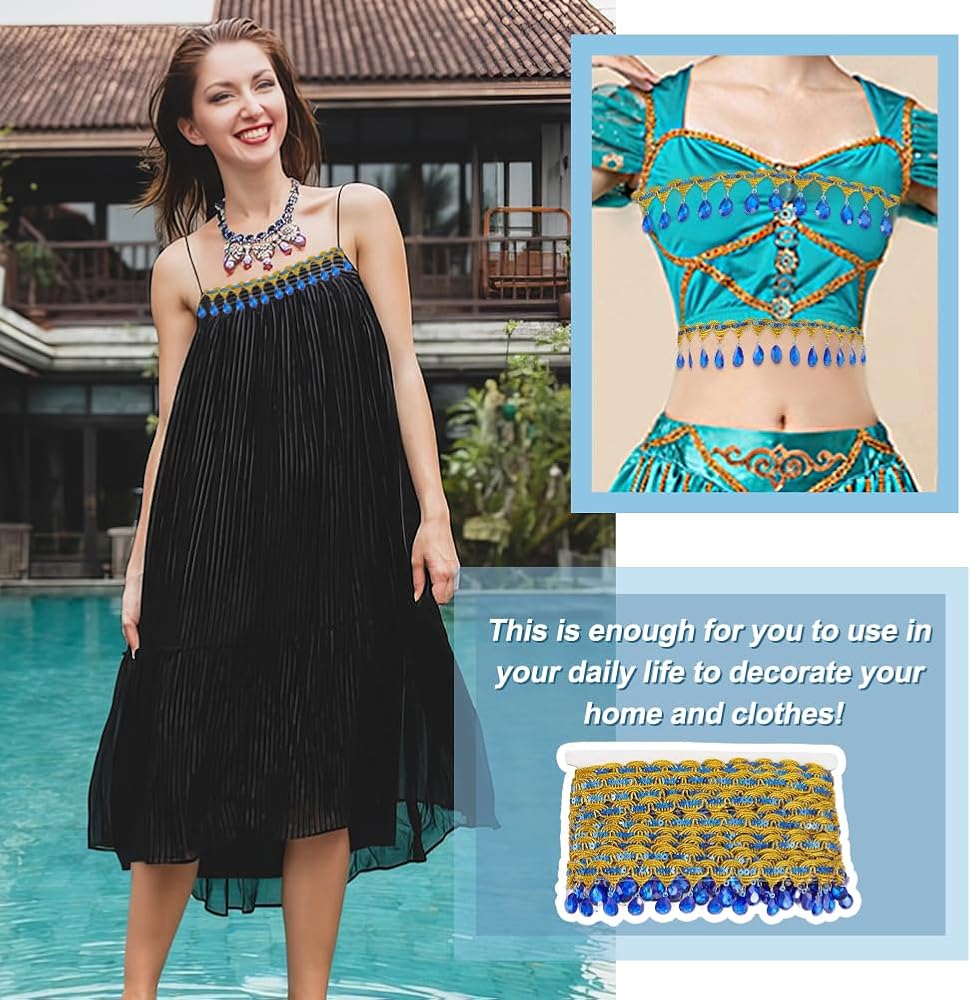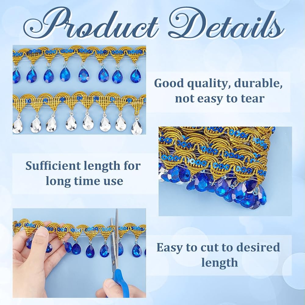 National Style:The whole ribbon is an arch weave design. Our ribbon has gold sequins and gold threads sewn on top while fishing lines are secured at the back and there are acrylic rhinestones dangling underneath in gold. They will bring bright colors for you.