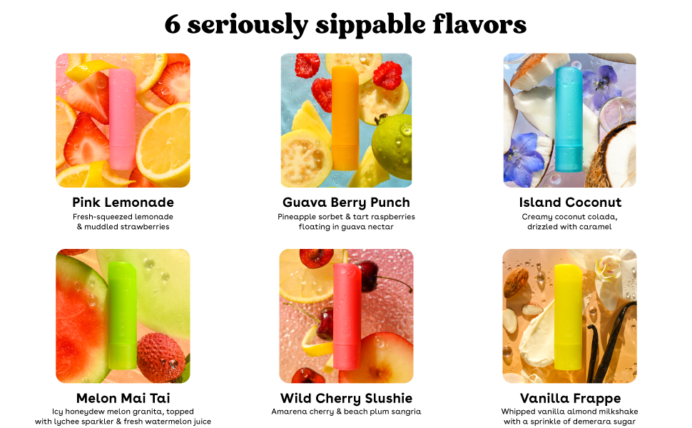 طعم عصير الليمون الوردي مثل عصير الليمون الطازج والفراولة الجوهرة المشوشة، بينما طعم جوافة بيري بانش مثل شربات الأناناس والتوت اللاذع العائم في رحيق الجوافة. استمتع بنكهات التوت الحلوة والعصارية، والأجواء الاستوائية، والشفاه فائقة النعومة! مرطب الشفاه الموصى به من قبل أطباء الجلدية مصمم للبشرة الحساسة ومصنوع من زبدة الشيا المهدئة وزيت جوز الهند خفيف الوزن ومضادات الأكسدة الواقية للرطوبة طوال اليوم. مصنوع من أكثر المكونات الطبيعية التي تحمي وتحبس الرطوبة على شفتيك والنكهة الأكثر طبيعية التي ستجعلك ترغب في تمريرها مرارًا وتكرارًا.