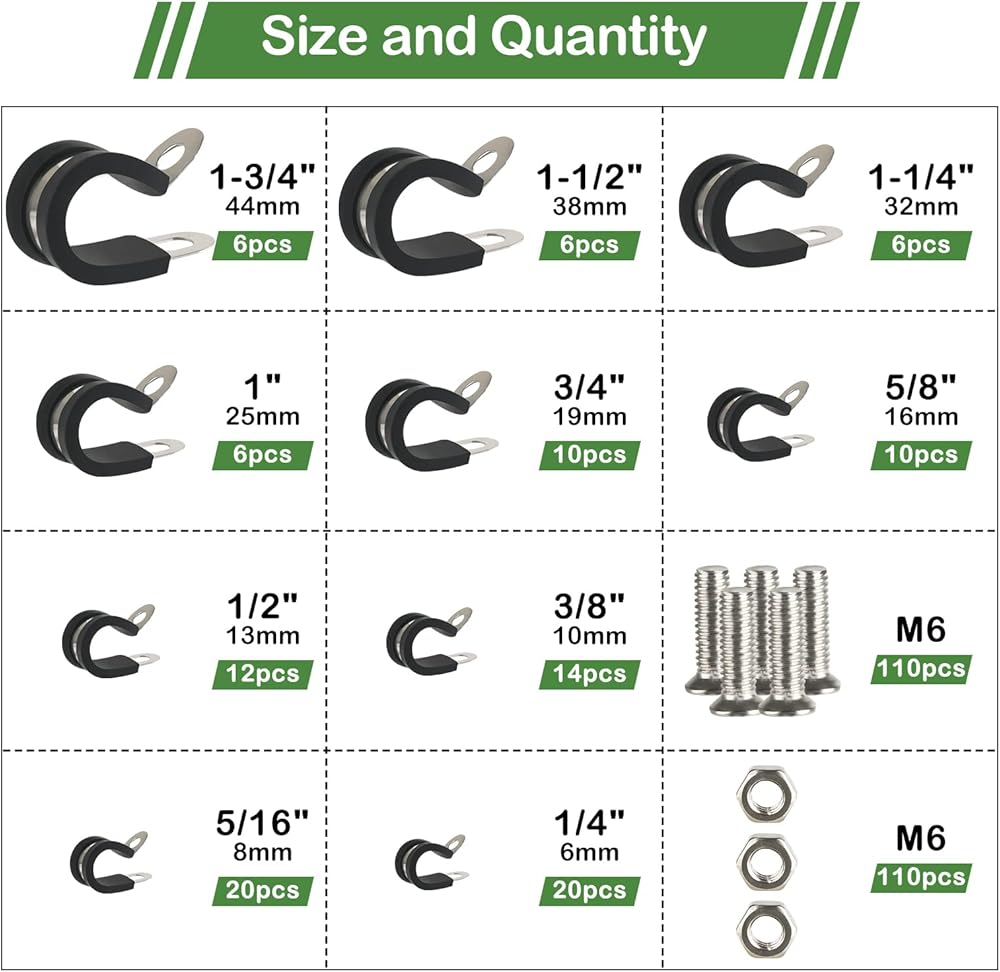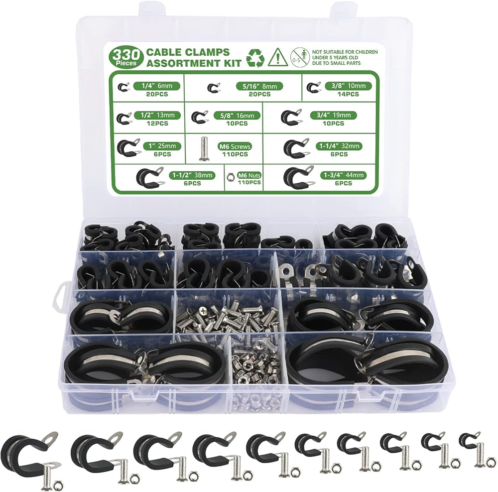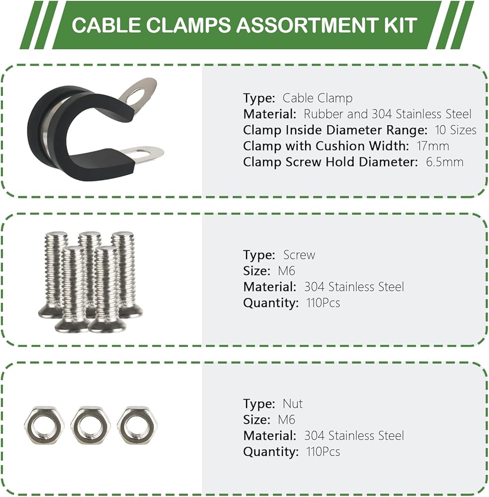 Cable clamps assortment kit is perfect to apply in automotive, industrial, marine, windshield, household etc. For wiring, cables, pipe, rack, line management and restoration. No matter in salt water/air environment.