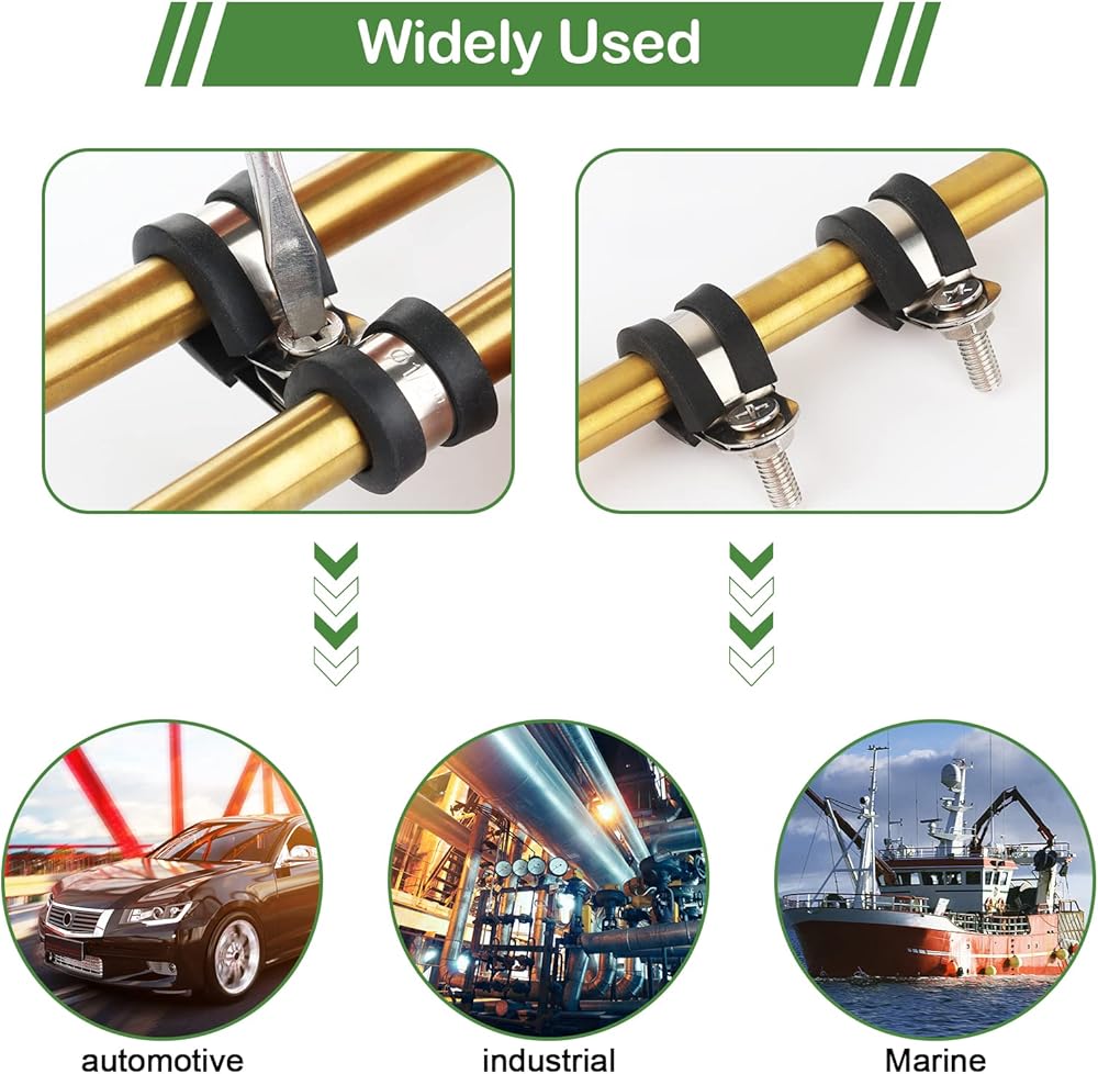 The rubber cushion pipe clamps suitable for marine, industry, indoor and outdoor, automobiles and other application.