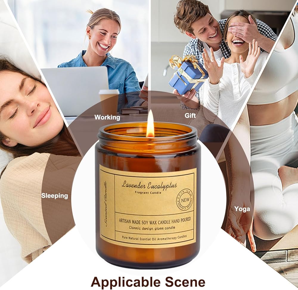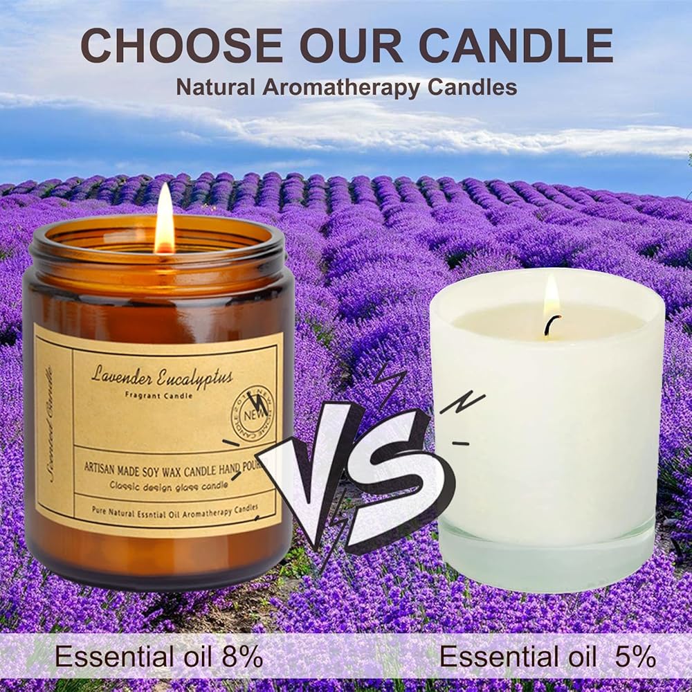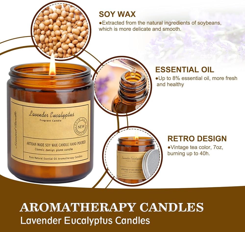 🍁 شموع معطرة برائحة اللافندر والأوكالبتوس: يتمتع اللافندر بخصائص مهدئة ومضادة للقلق والتي يمكن أن تساعدك على تخفيف القلق والتوتر، وتساعد الناس على الاسترخاء. ثانيا، الخزامى يمكن أن يعزز النوم. يتمتع اللافندر بتأثير مهدئ ومهدئ، مما يمكنه تحسين نوعية النوم.