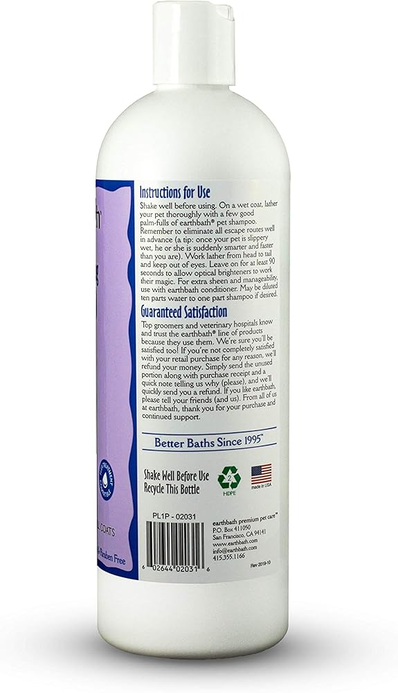 ENHANCES COLOR & SHINE IN ALL COATS - This shampoo adds extra sparkle and brilliance to coats of all colors. We blended a special selection of optical brighteners with gentle cleansers and lavender oil for a wonderfully aromatic and mild shampoo that helps brighten coats. This shampoo will leave your best friend's coat shiny, soft, plush, and smelling naturally fresh