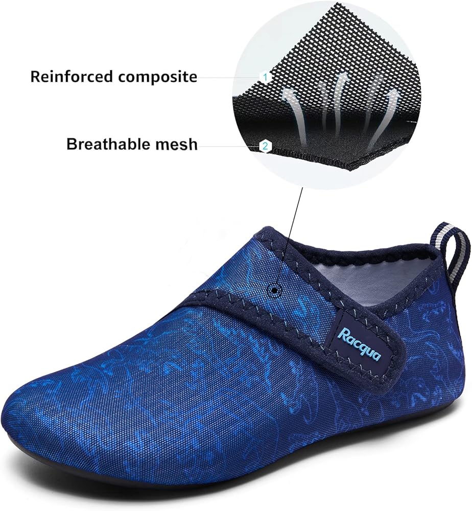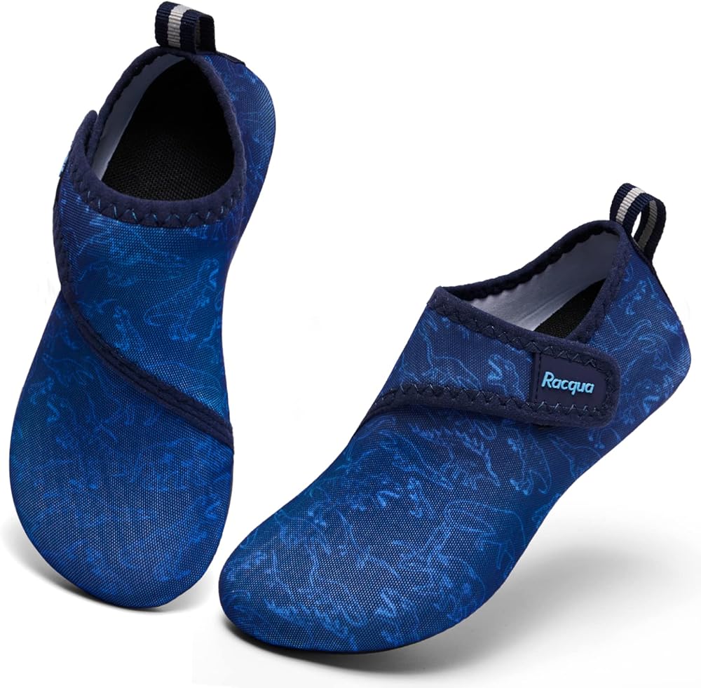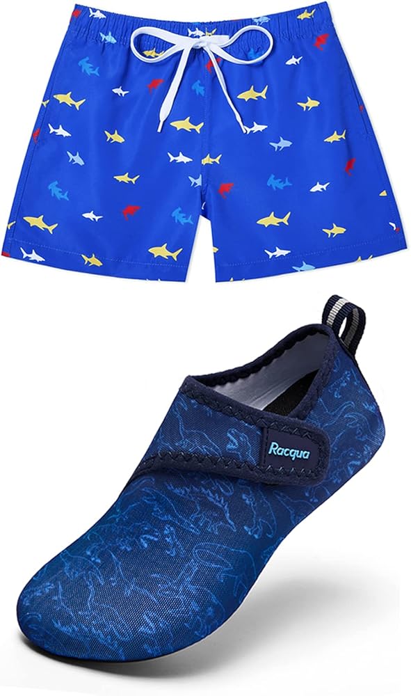أحذية الشاطئ المائية للأولاد من Racqua للأطفال الصغار باللون الأزرق ديناصور 13-13.5 للأولاد شورتات السباحة سريعة الجفاف شورتات الشاطئ مقاس القرش 5/6