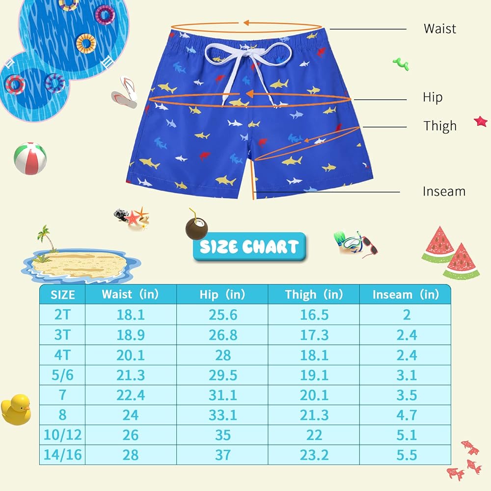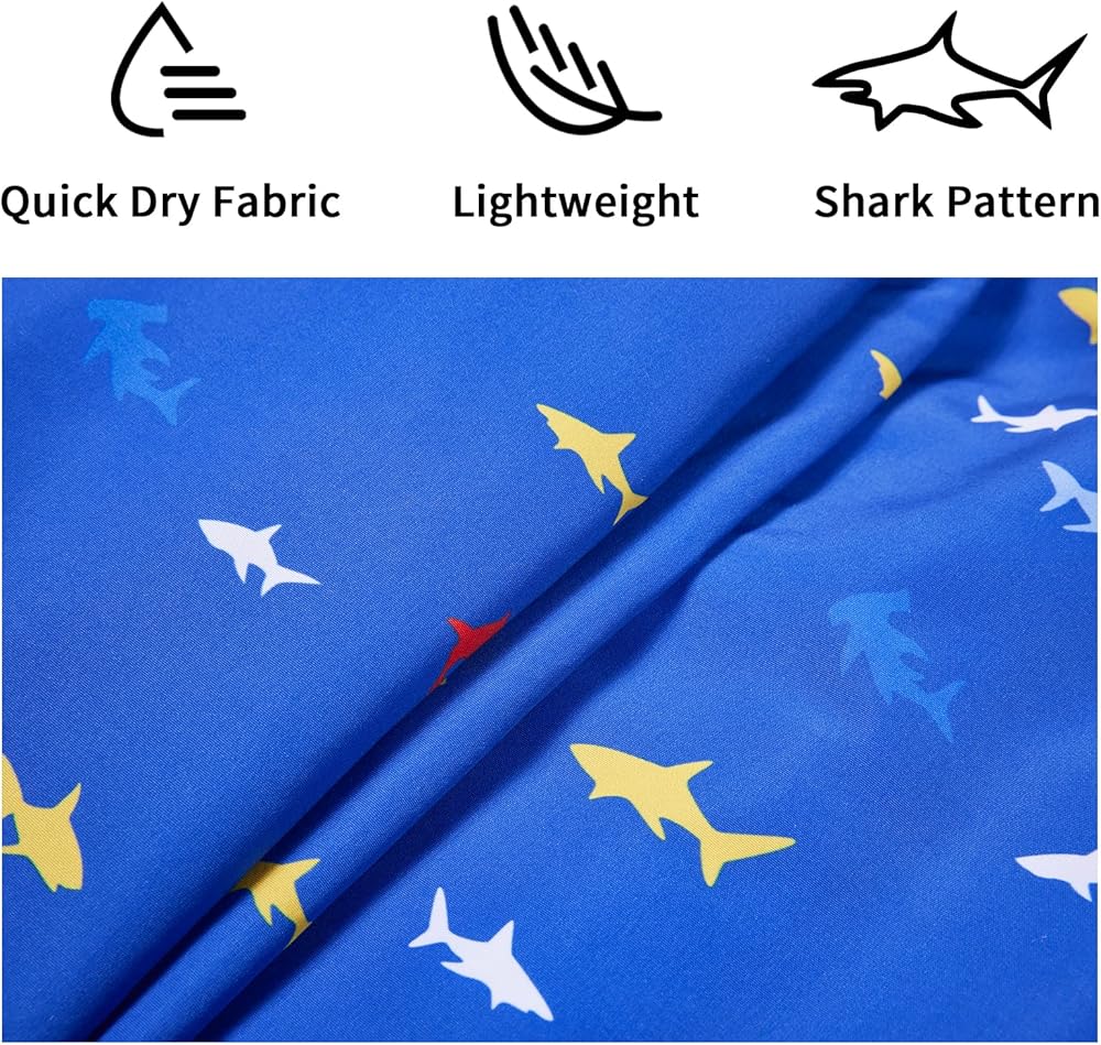 • STYLE: Printed design with bright colors, cute shark and dinosaur patterns are the favorite elements for boys. These beach shorts showcase the personality that boys beach shorts should have.