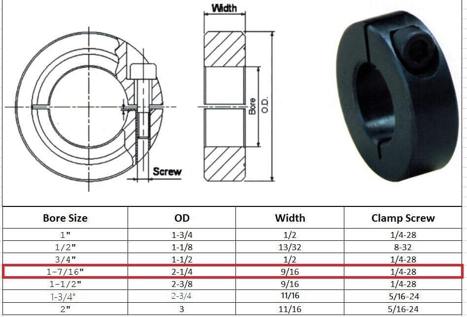 Jeremywell 1-7/16 "تجويف فردي مجموعة منفصلة طوق عمود المسمار OD 2-1/4" عرض 9/16" (2 قطعة)