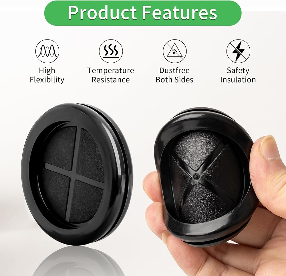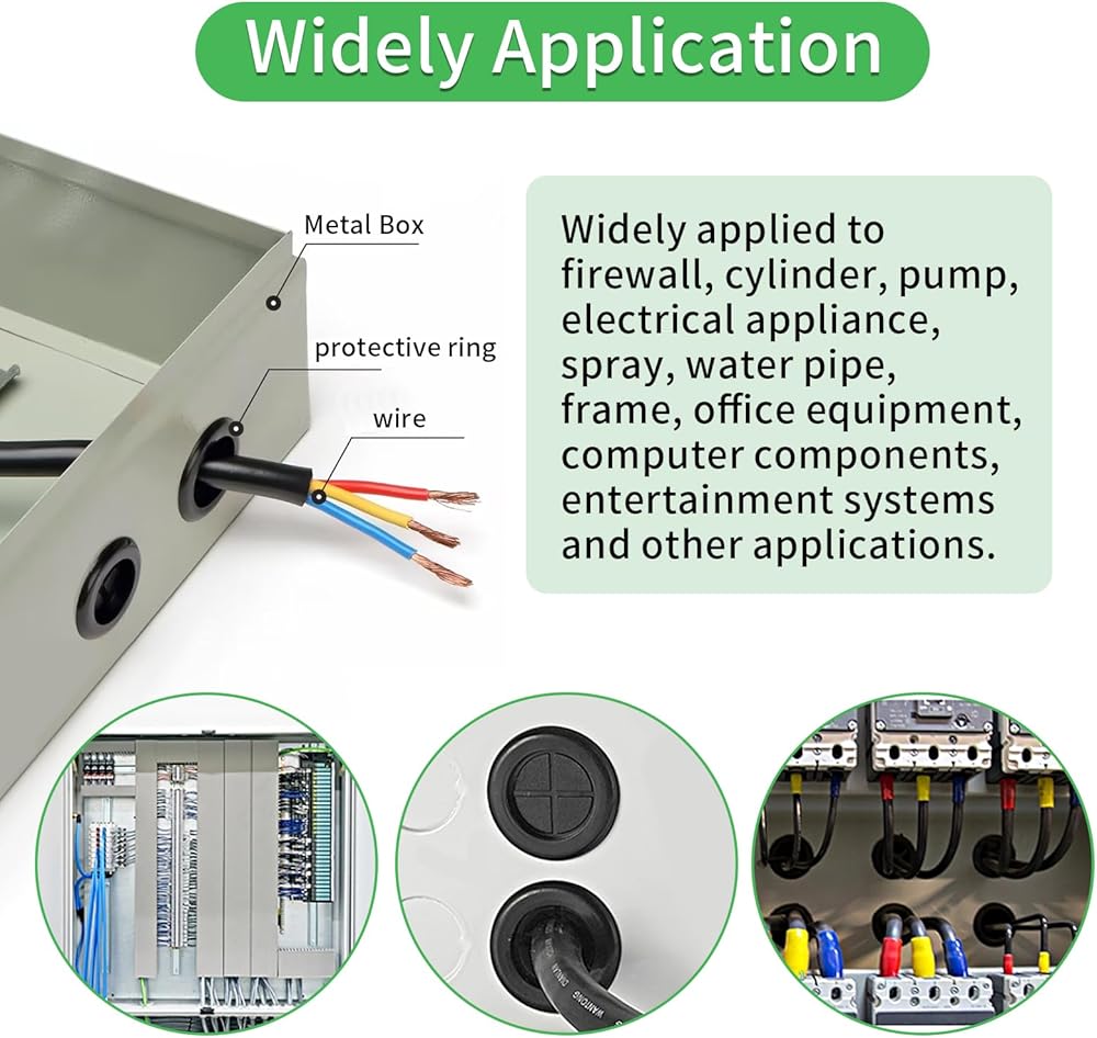 【استخدام على نطاق واسع】 لا تعمل سدادات فتحة جدار الحماية الخاصة بنا على ترتيب الأسلاك والسلك والكابلات فحسب، بل إنها تحمي أيضًا الأسلاك والكابلات من الحواف المعدنية الحادة، وتمنعها من الاحتكاك بالمعدن، وتملأ الفتحة وتقلل الضوضاء، وتسمح للأسلاك بالتوصيل. تمر عبر التطبيقات. ويمكن استخدامها في مجموعة متنوعة من التطبيقات، بما في ذلك جدران الحماية، والأسطوانات، والمضخات، والأجهزة الكهربائية، والبخاخات، وأنابيب المياه، والإطارات، والمعدات المكتبية، ومكونات الكمبيوتر، وأنظمة الترفيه، وغيرها.