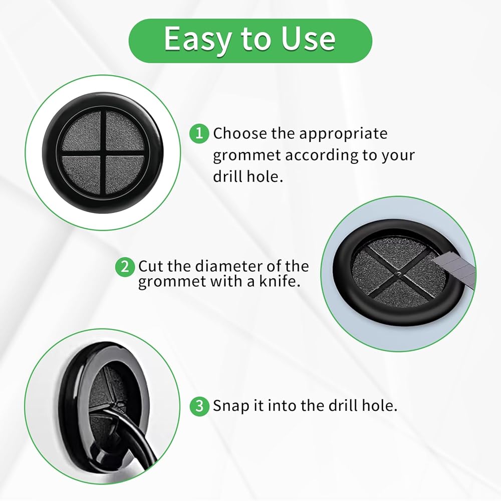 【سهلة التركيب】يمكن قطع قطر الحلقات بحرية وفقًا لسمك الكابل لحماية الخط من الغبار والمطر. كل حلقة معدنية مرنة وسهلة التركيب. ما عليك سوى قطع قطر القابس وتثبيته على الفور في فتحة الحفر.