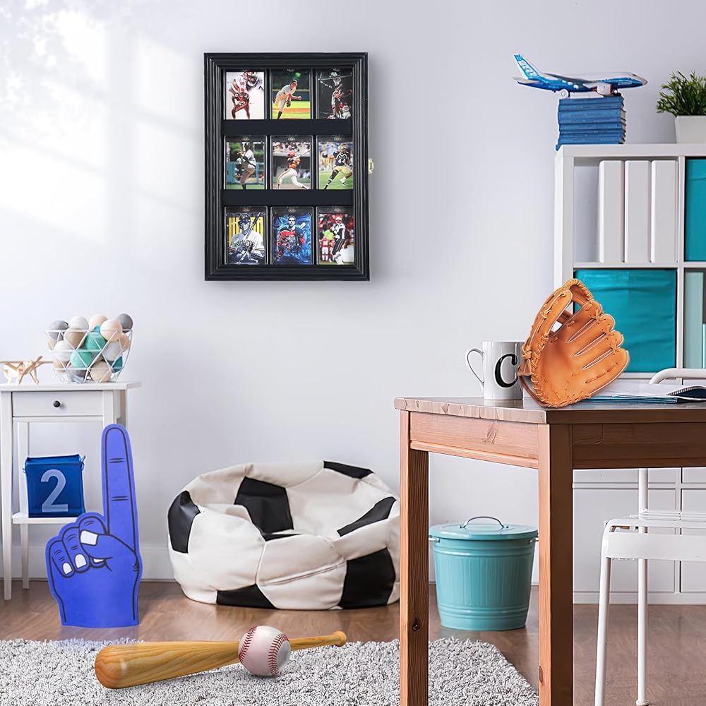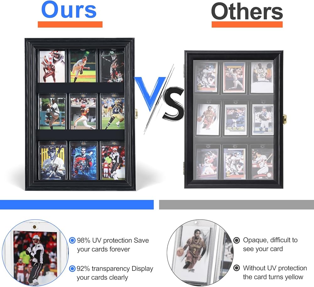 【عرض البطاقات الرياضية】 حافظة عرض البطاقات الرياضية مصنوعة من الأكريليك الشفاف عالي الجودة والحماية من الأشعة فوق البنفسجية لسهولة المشاهدة، وتحمل 9 قطع من بطاقات النجوم الرياضية للبيسبول وكرة السلة والهوكي وكرة القدم وغيرها من البطاقات التي لا يزيد ارتفاعها عن 5.5 بوصة