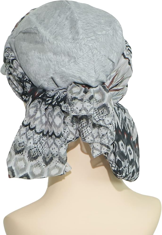 استخدامات متعددة: تصميمات عصرية للنساء اللاتي يعانين من تساقط الشعر في الاستخدام الداخلي والخارجي، تساعدها في الأوقات الصعبة وتجد الثقة. استخدميه خلال النهار عندما لا ترغبين في ارتداء شعر مستعار. ويمكن أيضًا ربط الوشاح بالرقبة. منفردة للحصول على إكسسوار أنيق.