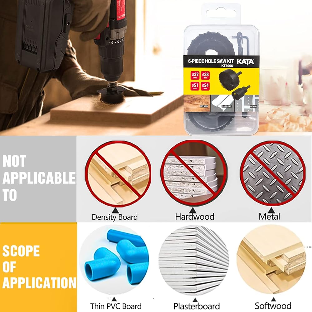 【استخدام واسع】: أسنان حادة لقص أسرع وأكثر نظافة، منشار ثقب للمعادن الرقيقة، والخشب الصلب والناعم، والجدران الجافة. غير مناسب للمواد مثل الزجاج والفولاذ المقاوم للصدأ وبلاط السيراميك وما إلى ذلك.