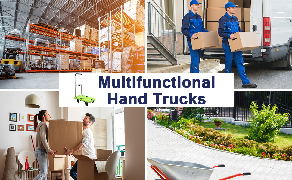 [تصميم وابتكار متعدد الأغراض] - سواء كنت تنقل الأدوات المنزلية أو الألواح الخشبية أو الأمتعة أو البضائع التجارية، فإن هذه الدمية يمكنها أن تفعل كل شيء، مما يجعل التحميل والتفريغ سهلاً. وبغض النظر عن مكان استخدامها، فمن السهل تخزين العربة القابلة للطي في المرآب أو المكتب أو المستودع، إلخ.