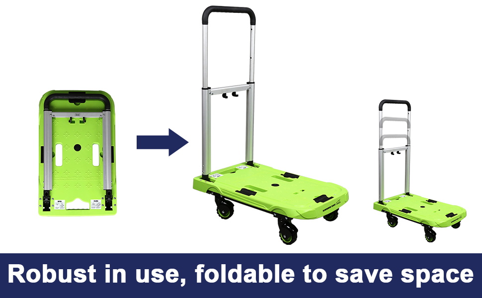[صغيرة الحجم وقابلة للطي] - مصممة لتوفير المساحة وسهولة النقل، يمكن طي عربة اليد هذه إلى حجم 24 × 14 × 3 بوصة، ووضعها بعيدًا وتخزينها بشكل مريح في صندوق السيارة أو القبو، إلخ.