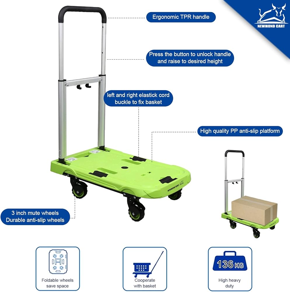 [مع سعة دعم كبيرة] - يمكن لعربة الدفع المصممة هندسيًا أن تحمل ما يصل إلى 198 رطلاً، مما يضمن حمل كمية كبيرة من البضائع، والتي لن تنزلق للخلف وستصل بأمان إلى المكان الذي تحتاج إليه. مصممة بسعة كبيرة للوزن، فهي مثالية لنقل العديد من العناصر.