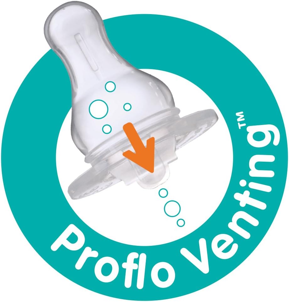 • PREMIUM VENTING - Evenflo Feeding's patented Proflo Venting Technology was developed to ensure milk bubbles stay in the bottle and not in your baby's tummy. This gentle, 1-piece venting system helps significantly reduce the potential for colic, reflux, gas, and fussiness, keeping your baby comfortable even after they are finished eating.