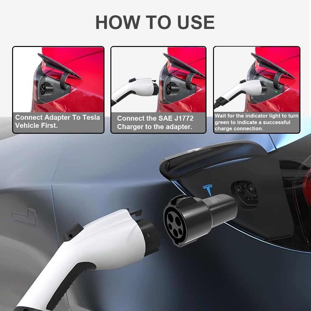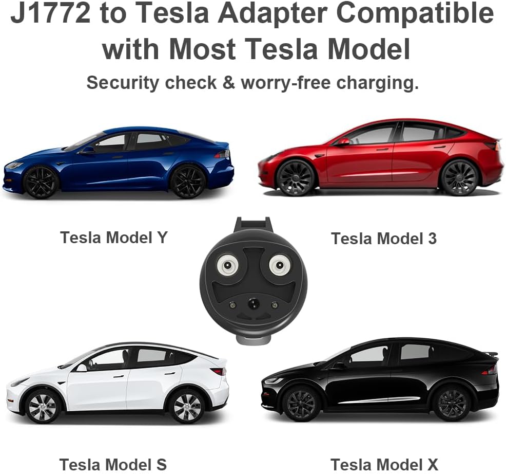 محول J1772 إلى Tesla لطراز Tesla 3/Y/S/X، 80 أمبير/250 فولت تيار متردد، محول شحن Tesla لرحلة الشركة المنزلية، محمول، آمن، صلب، تصميم متين متوافق مع محطة شاحن J1772، المستوى 1، 2