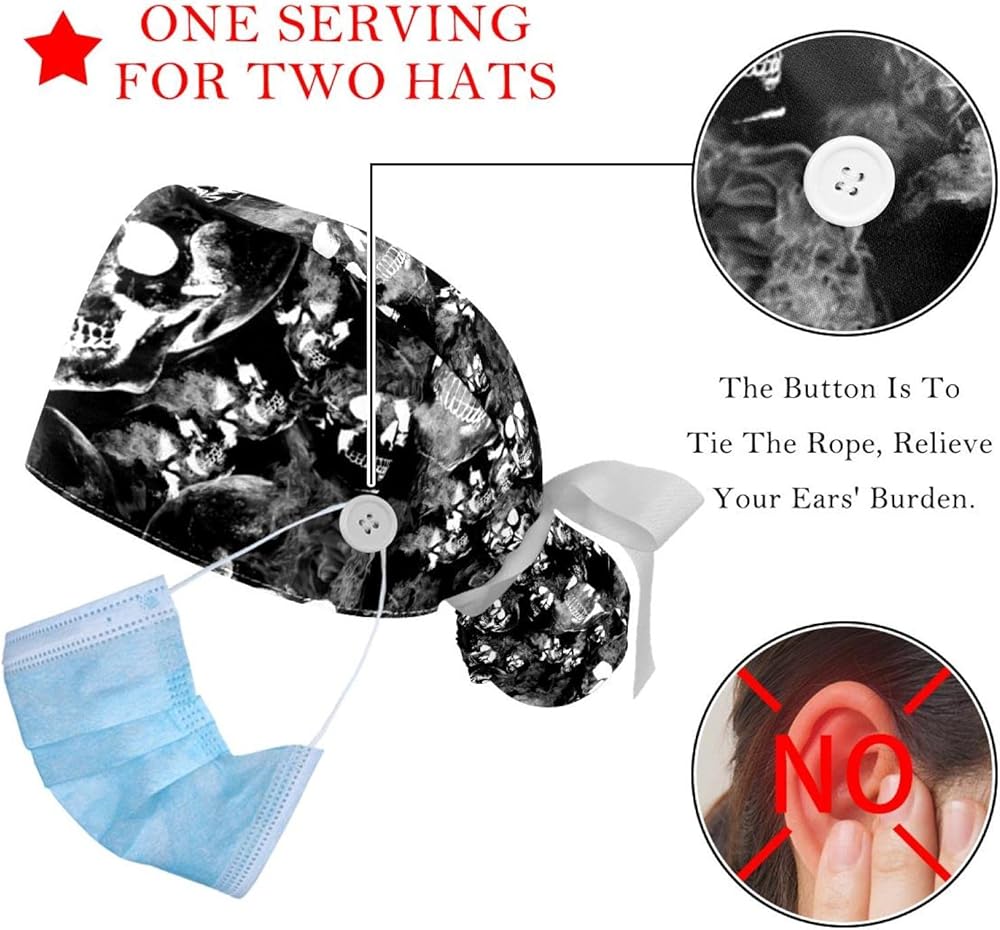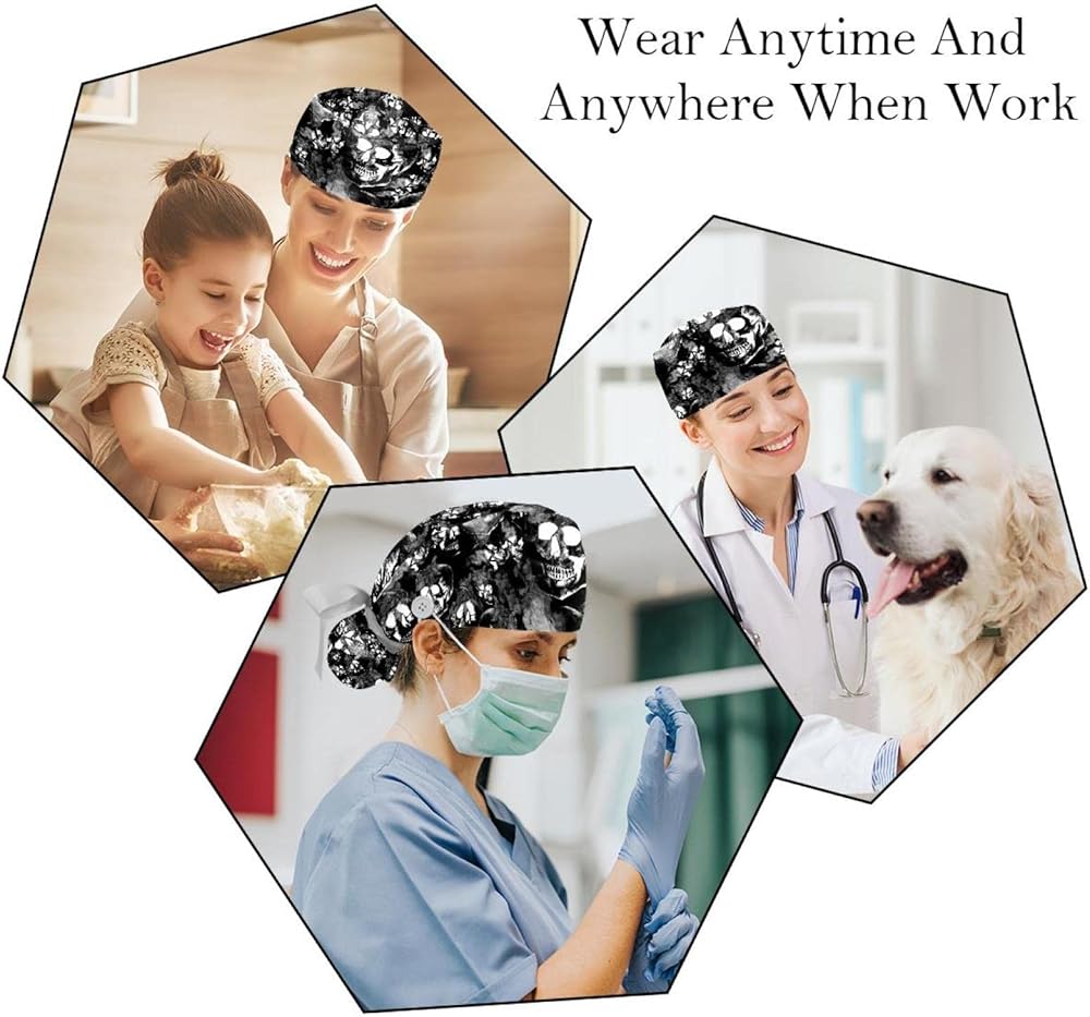 • Cute Printed Medical Hats: 2 Pieces fashion working hats included. Each bouffant hat is printed with beautiful patterns, very eye-catching and functional; make your work time happier and used as a fashionable accessory to complement your everyday outfits.