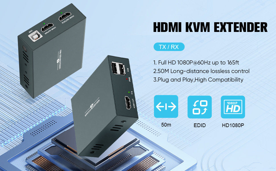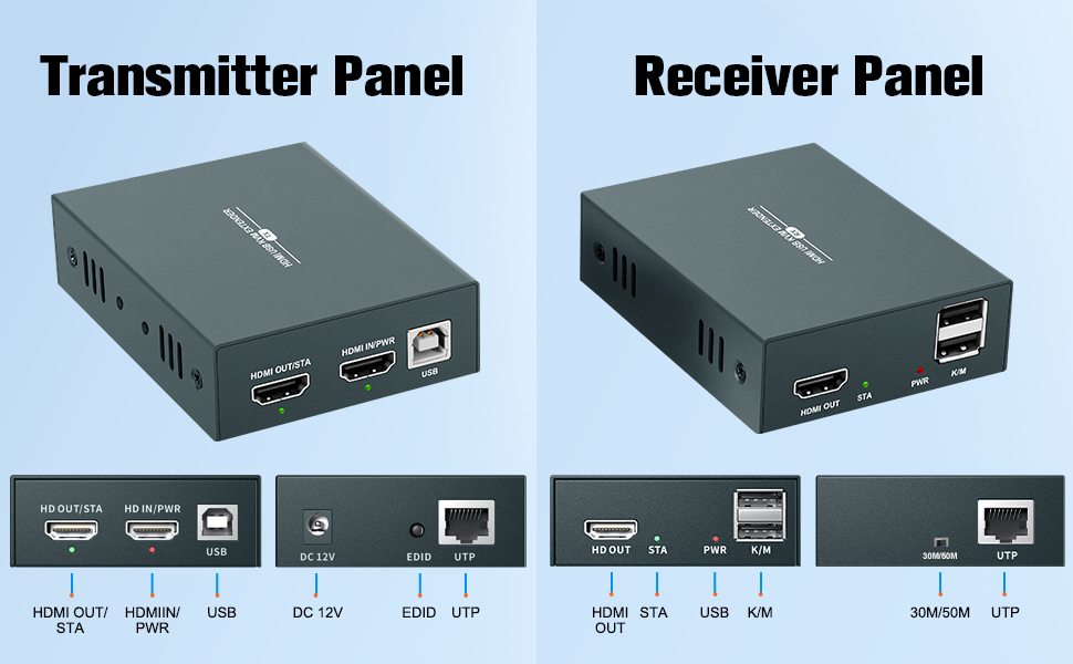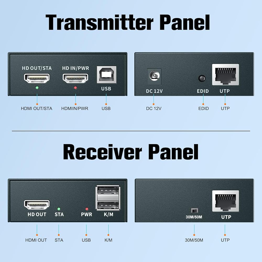 ✅【إشارات HDMI عبر إيثرنت RJ45، USB وKVM 】 يوفر موسع HDMI USB KVM الخاص بنا امتدادًا لإشارات HDMI لمسافات طويلة وإشارات HDMI المنقولة دون فقدان عبر كابل UTP واحد، يمكنك التحكم عن بعد في الإشارات عبر لوحة المفاتيح والماوس (يدعم جانب المستقبل الاتصال الماوس ولوحة المفاتيح).