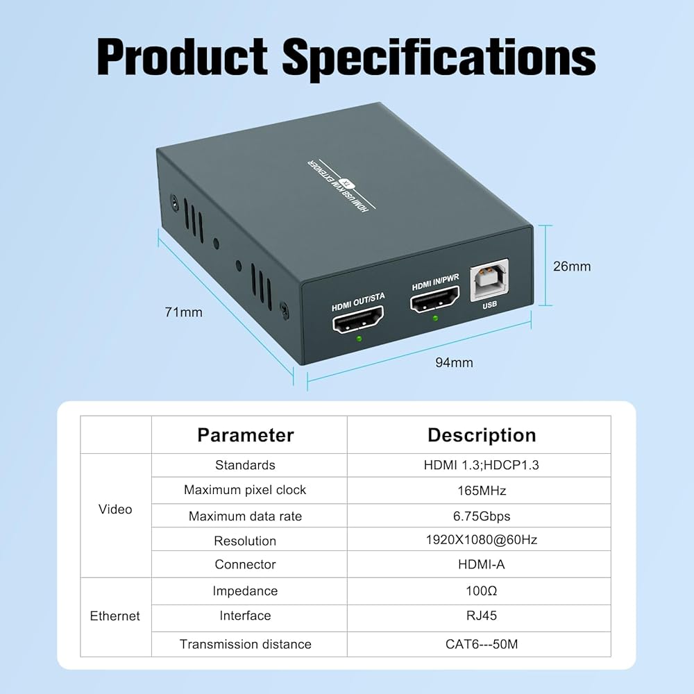 ✅【نقل لمسافات طويلة بطول 165 قدمًا/50 مترًا】يمكن لموسع HDMI هذا أن ينقل ما يصل إلى 165 قدمًا/50 مترًا عبر كابل cat6، والذي سيلبي جميع احتياجاتك، مثل مراقبة الأمان الأمريكية، ومؤتمرات الفيديو، وشاشة العرض الخارجية، إلخ.