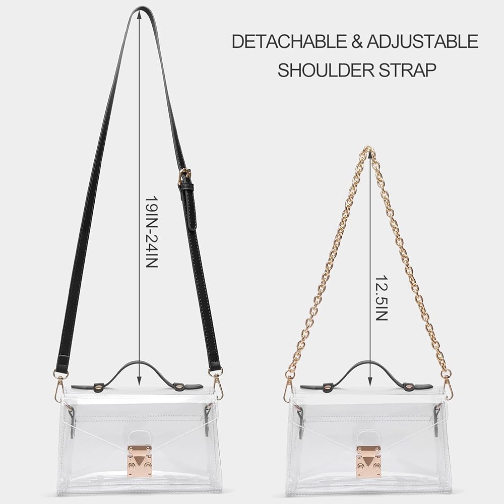 • Stadium Approved: LZXYBIN clear purses for women stadium completely meets the requirement of tournament clear bag policy for most stadiums and offices. You can use the clear purse as clear clutch purse/crossbody purse/shoulder purse, suitable for work, shopping, festival, concert, gameday. Its transparent outlook and reasonable size are designed for you a hassle-free security passing