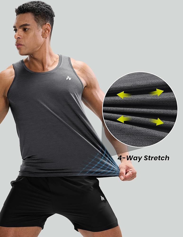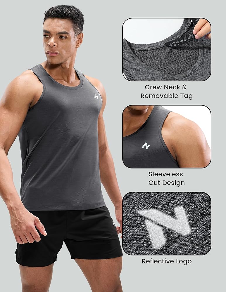 • قميص بدون أكمام للرجال: فتحات أذرع واسعة وتصميم بدون أكمام توفر مرونة ممتازة، مما يسمح لك بالتمرين دون تشتيت الانتباه والتحرك بحرية خلال روتينك.
