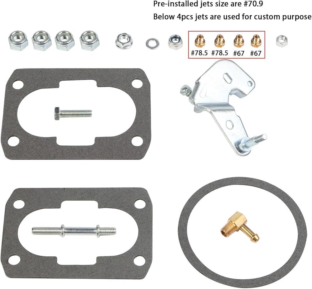 المواصفات: نمط الترباس الأساسي هو 3 3/4 × 2 بوصة؛ مع الاختناق الكهربائي ومدخل الوقود الجانبي؛ مع تركيب الوصلة القصيرة والوصلة الطويلة في الصندوق، حجم الطائرات المثبتة مسبقًا هو #70.9، يتم استخدام النفاثات الأربعة في الشكل لأغراض مخصصة