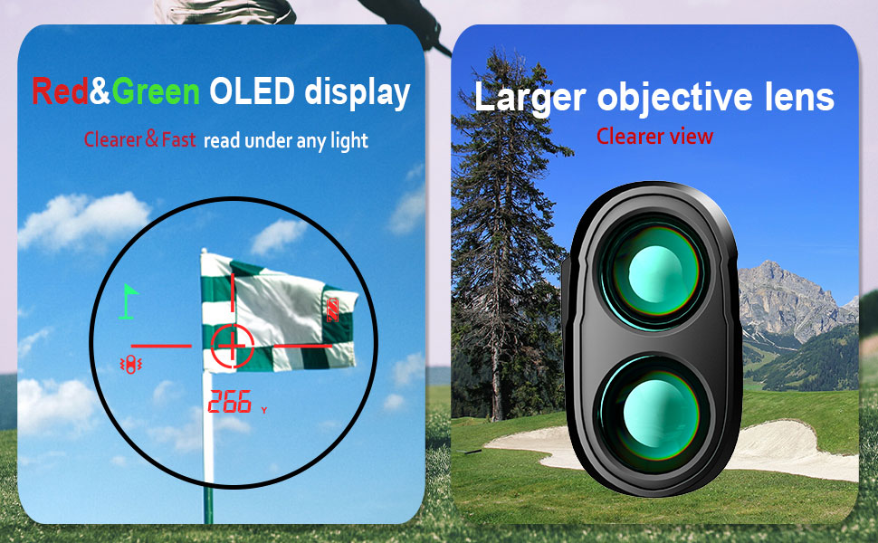 • ⛳️ 【جهاز تحديد المدى OLED باللونين الأحمر والأخضر】 يحتوي جهاز تحديد المدى على شاشة OLED مدمجة عالية التباين، والتي يمكن أن توفر قراءات باللونين الأحمر والأخضر. 4 مستويات سطوع. تكبير 6X، يوفر جهاز تحديد نطاق الجولف HUADER صورة واضحة وبيانات سريعة ودقيقة سواء في البيئة الساطعة أو المظلمة.