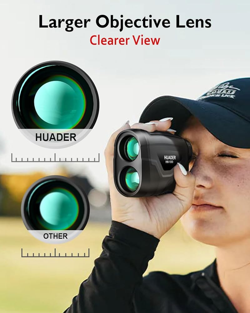 • ⛳️ 【مكتشف نطاق القراءة الدقيق والسريع】 محدد نطاق 1093 ياردة بدقة +/- 1 ياردة، سرعة قياس سريعة <0.5 ثانية. يساعدك محدد المدى HUADER على التقاط الأهداف بسهولة. *نطاق وضع القفل الدبوس 3-273 ياردة.