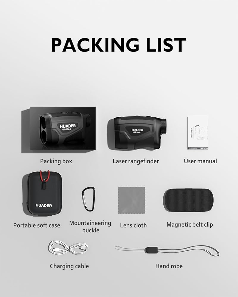• ⛳️ 【ضمان لمدة عام وهدية فاخرة】 قائمة التعبئة: جهاز صيد المدى HM-1000، وحقيبة حمل، ومشبك لوحة معدنية، وحلقة تسلق، وقطعة قماش تنظيف من الألياف الدقيقة، وحزام اليد، ودليل المستخدم، وكابل شحن من النوع C. بالتأكيد هدية عظيمة للاعبي الجولف والصياد! نقدم ضمانًا محدودًا لمدة عام ودعمًا فنيًا مدى الحياة، اشترِ واستمتع الآن!