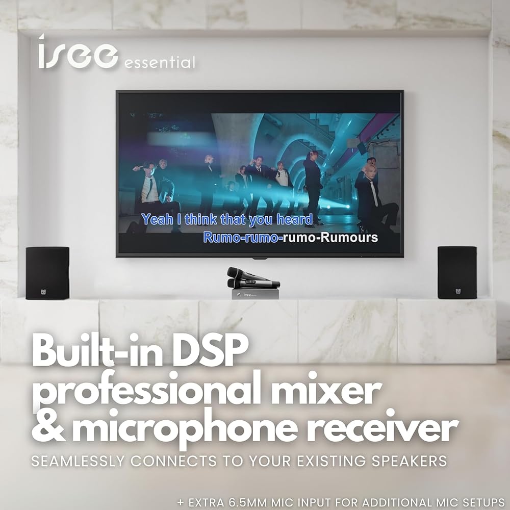 يمكنك الاتصال بسلاسة بنظام الصوت المنزلي الموجود لديك: خلاط DSP احترافي مدمج وجهاز استقبال ميكروفون لاسلكي، مما يوفر المال والمساحة