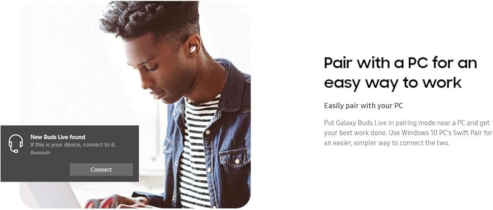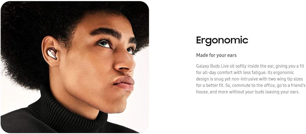 نقدم لكم Galaxy Buds Live - الشكل الأحدث لسماعات الأذن اللاسلكية الحقيقية، تم تصميم سماعة الأذن لتتناغم مع كل لحظة. بفضل الشكل الأيقوني والتصميم المريح، والملاءمة التي تسمح لك بالدخول إلى محيطك الطبيعي، ومكبر الصوت المُحسّن للحصول على تجربة أفضل. هذا صوت مصنوع لأذنيك. صوت حي وعميق - استمع إلى كل صوت ينبض بالحياة، واشعر وكأنك في الصف الأمامي، أو جزء من شيء أكبر. تعمل مكبرات الصوت مقاس 12 ملم مع الصوت من AKG جنبًا إلى جنب مع التصميم المريح لسماعات Galaxy Buds Live لتقديم صوت واسع، بينما يساعد المحرك الكبير وقناة الجهير على إصدار صوت جهير عميق مع تدفق الهواء الذي يسمح بتدفق الصوت بسلاسة. إلغاء الضوضاء النشط - تقليل عوامل التشتيت إن أول إلغاء نشط للضوضاء (ANC) للنوع المفتوح في سماعات Galaxy اللاسلكية الحقيقية يمنع الضوضاء، ولكنه يسمح للعالم بالدخول. فهو يقلل من الضوضاء الخلفية دون فقدان ما هو مهم، مثل الأصوات والإعلانات، حتى تسمع المزيد مما تريد سماعه - كل ذلك بمجرد الضغط لفترة طويلة لتشغيله. الشحن - طاقة لمزيد من وقت اللعب. اشحن في دقائق معدودة حتى تتمكن من العودة إلى الأخدود. خمس دقائق تمنحك ساعة، سواء كان ذلك لقائمة التشغيل المفضلة لديك أو لأحدث بودكاست. إذا كنت بحاجة إلى القليل من الطاقة الإضافية، فيمكنك أيضًا استخدام طاقة هاتفك الذكي لشحن سماعات Galaxy Buds Live أثناء التنقل. قم بإقرانها مع جهاز كمبيوتر للحصول على طريقة سهلة للعمل - قم بإقرانها بسهولة مع PCPut Galaxy Buds Live في وضع الإقران بالقرب من جهاز كمبيوتر وإنجاز أفضل أعمالك. استخدم Swift Pair على جهاز الكمبيوتر الذي يعمل بنظام التشغيل Windows 10 للحصول على طريقة أسهل وأبسط لتوصيل الاثنين.