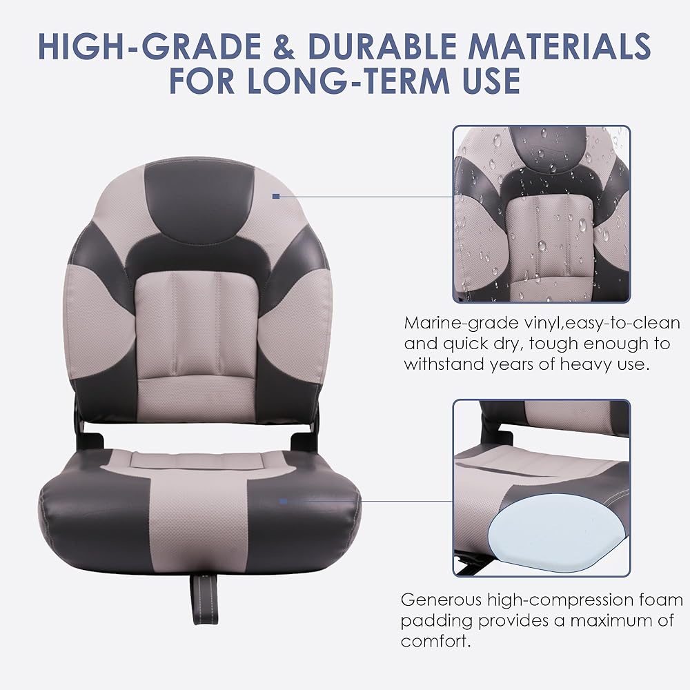 ERGONOMIC FEATURES - According to the ergonomic design, our boat seat will reduce your back and vertebrae pain when you are sitting for a long time. The high backrest perfectly fits to the curve of human spine can give you strong support and help you release back pressure.