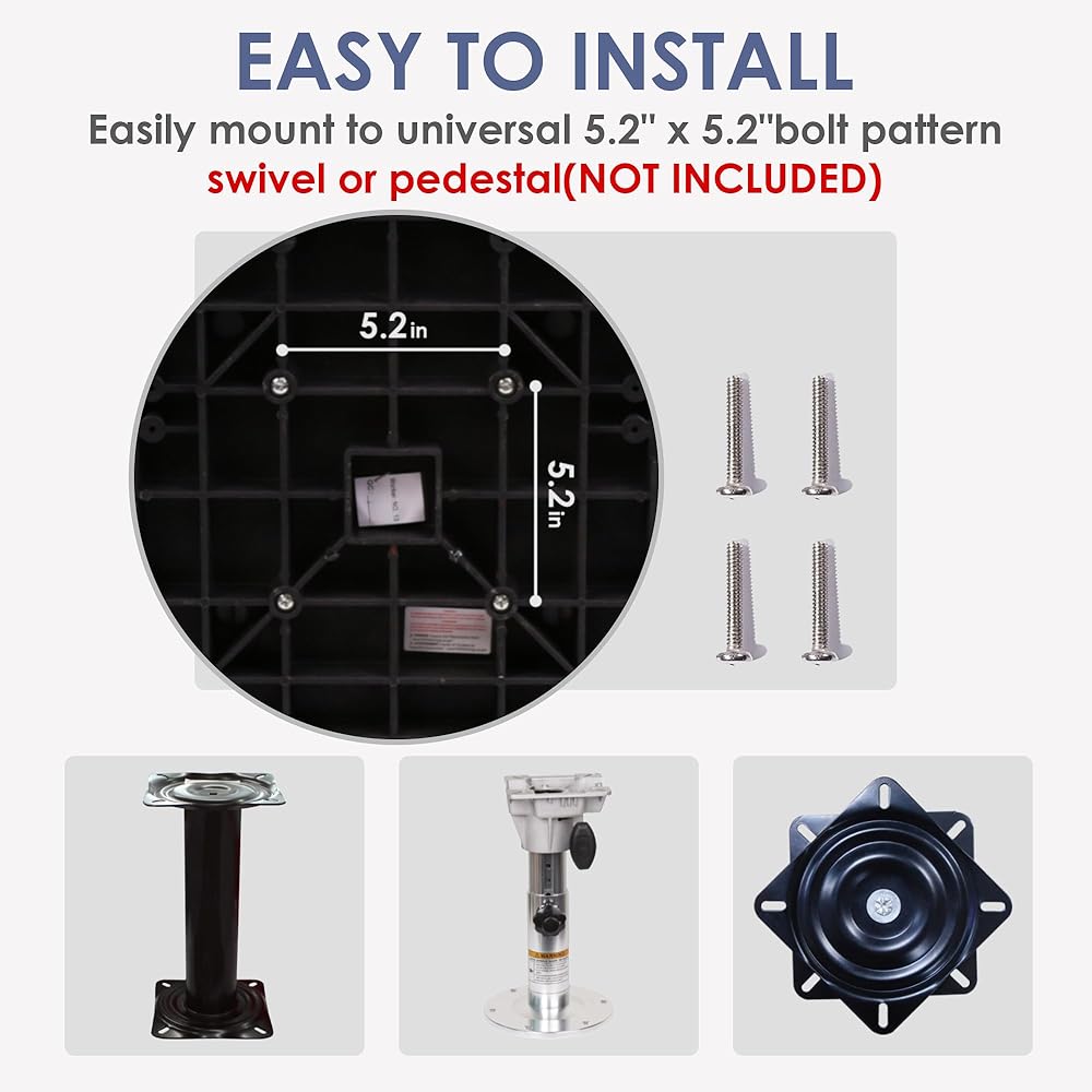 EASY TO INSTALL - Included 4 stainless steel mounting bolts/screws, easily mount to universal 5.2'' x 5.2 '' bolt pattern swivel or pedestal.(No swivel/pedestal included)