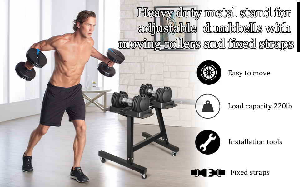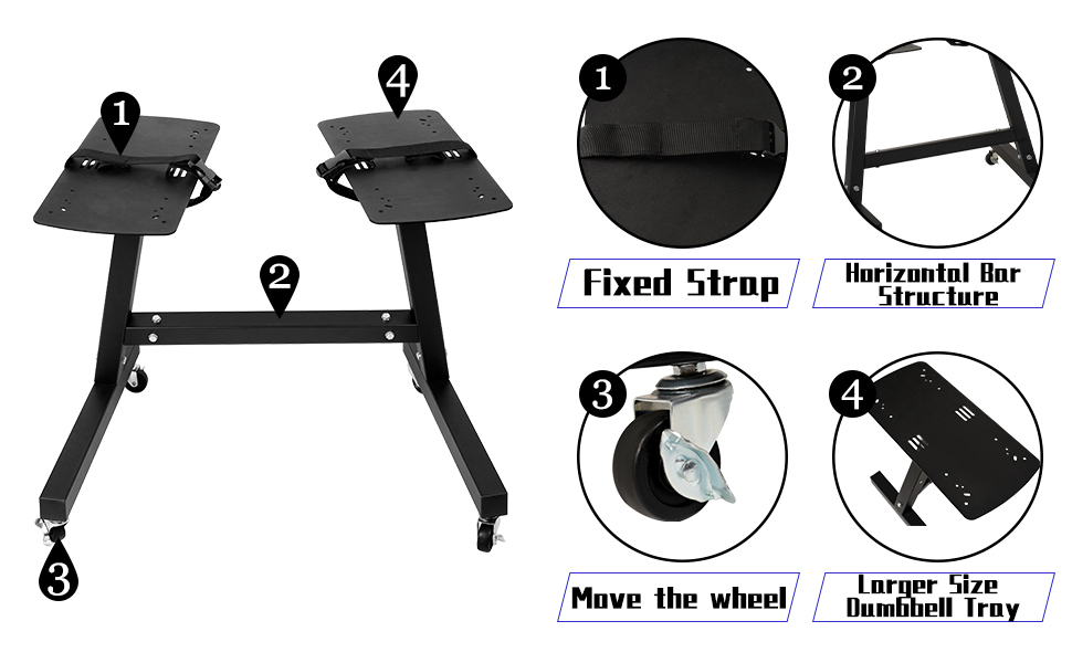 • قاعدة دمبل باور بلوك مطورة: صينية الدمبل الواسعة والمسطحة مناسبة لوضع دمبل باور بلوك القابل للتعديل بأحجام مختلفة وأنواع الدعامات السفلية. تتميز قاعدة الدمبل المعدنية بتصميم حزام، والذي يعمل على تثبيت دعامة الدمبل السفلية بقوة على حامل الدمبل، مما يجعل الدمبل أكثر راحة وأمانًا في الحمل.