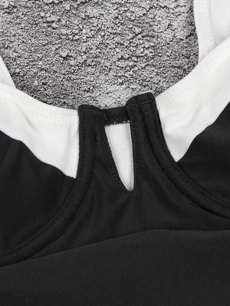 - Color block sleeveless high cut one piece bathing suit